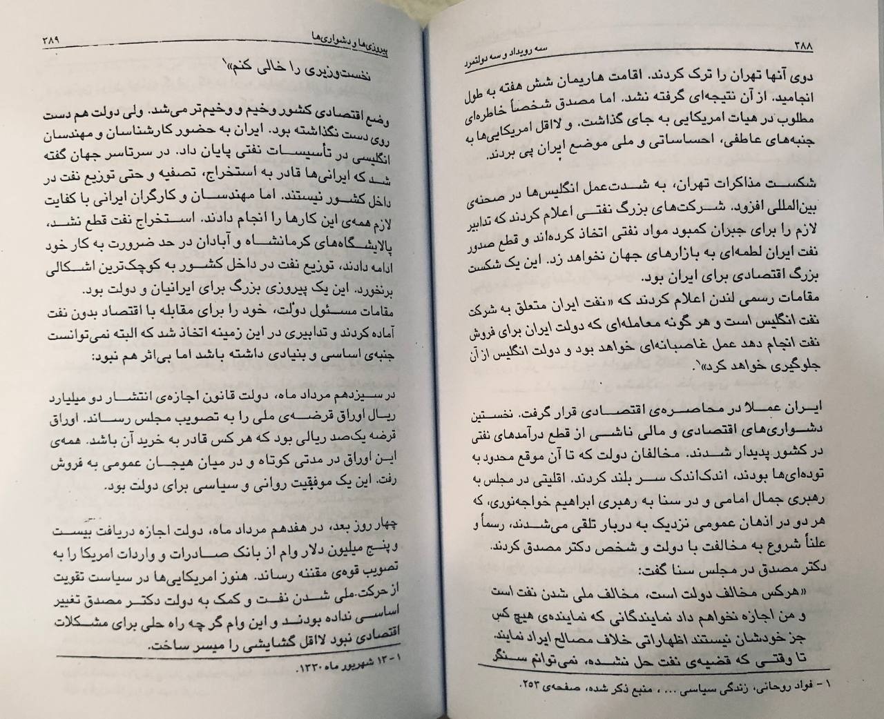 سه حادثه ی عمده ی تاریخ معاصر ایران: کوشش شوری ها برای تجزیه آذربایجان و قسمتی از کردستان و پایان بحران به همت همه ی مردم ایران، به ویژه قوام السلطنه، نهضت ملی کردن نفت که دکتر مصدق پرچم دار آن بود و سرانجام پایان حکومت مصدق و حوادث بیست و پنجم تا بیست و هشتم