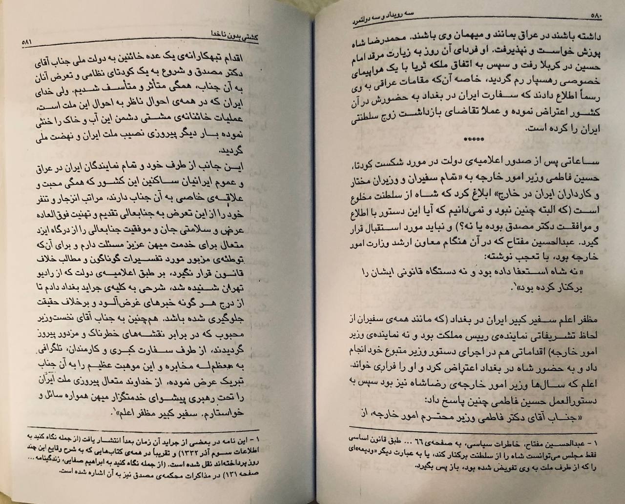 سه رویداد و سه دولتمرد، چنان که در عنوان کتاب هم آمده، تاملی است در باره یک دهه تاریخ معاصر ایران که پس از گذشت بیش از نیم قرن، نه تنها از دیدگاه تاریخی و تاریخ، بلکه از نظر سیاسی مورد بحث و حتی مجادله ی بسیاری از صاحب نظران است.
