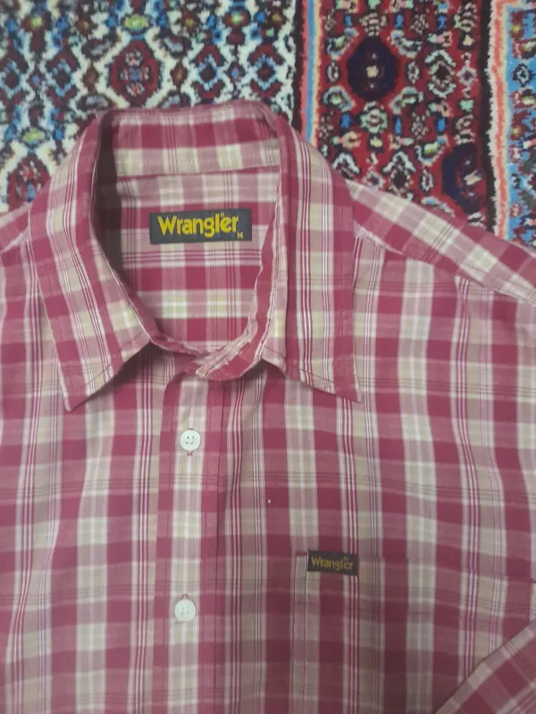 پیراهن اوریجینال رانگلر بسیار زیبا و خوش پوش مناسب افراد با قد 170 الی 175 وزن 75 الی 85اندازه عرض سرشانه 50 زیر بغل 60 قد74 سانت