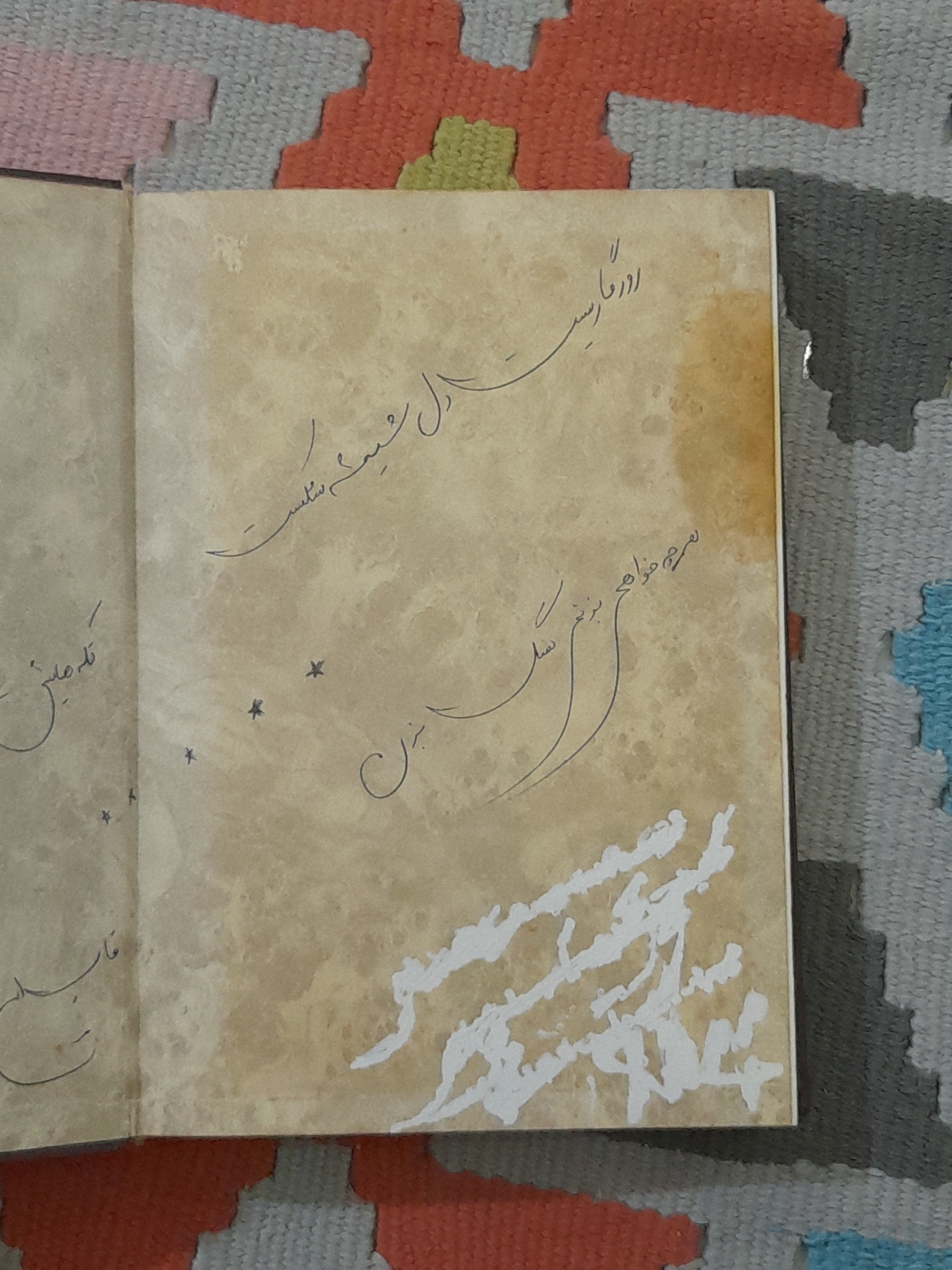 داخل کتاب لکه های زرد رنگی وجود دارد که در عکسها مشهود است.
