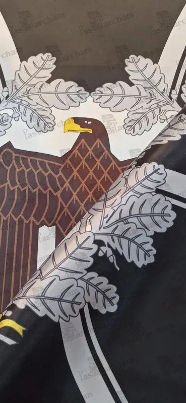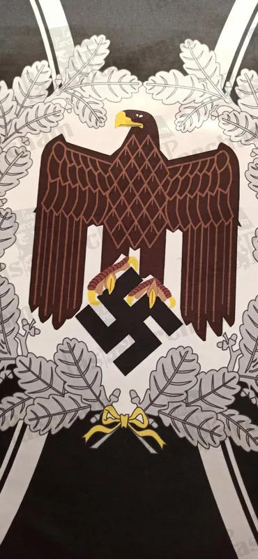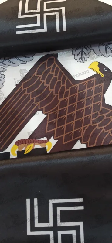 توضیحات: تشکیل شده از صلیب آهنین بزرگی که در مرکز آن عقابی همراه یک سواستیکا قرار دارد. در چهار گوشه این پرچم همچنین چهار سواستیکای دیگر قرار دارند.