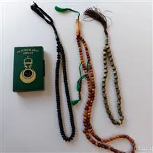 سه تسبیح چوبی ،پلاستیک و طرح سنگی و قبله نما که نو وآکبند میباشد .