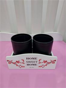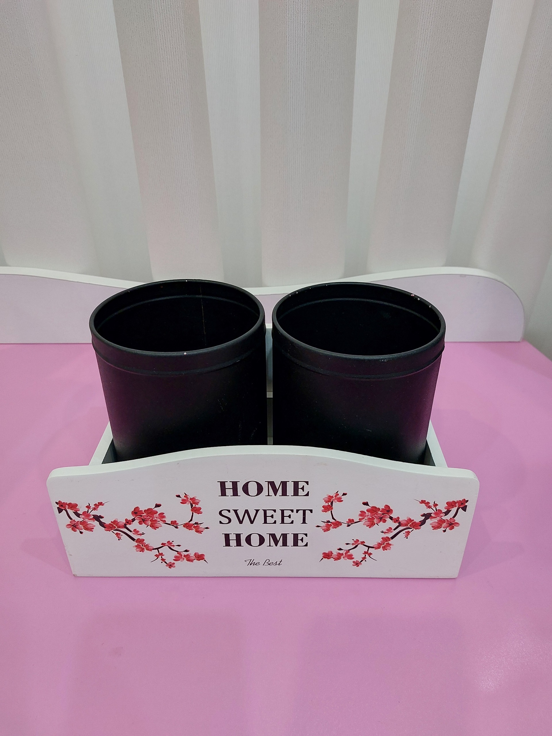 استندش چوبی هست.بهتر هست که ظروف خیس داخلش قرار ندهیم .چون بنده این کاررو کردم وکمی حالت زنگ زدگی پیدا کرده که البته با یک رنگ گواش یا اسپری مشکی پوشانده میشه .