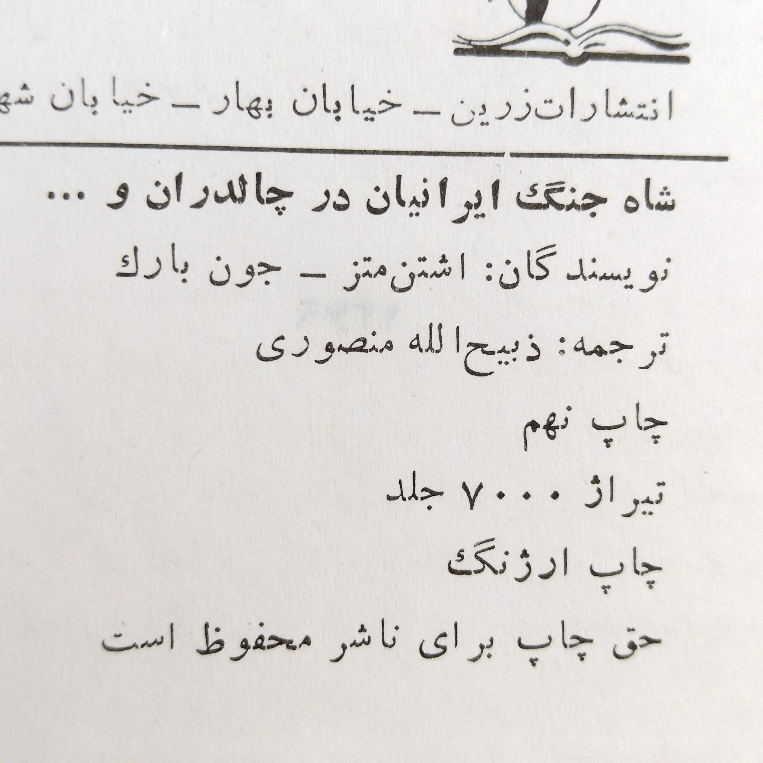 شاه جنگ ایرانیان در چالدران و یونان چاپ نهم نو