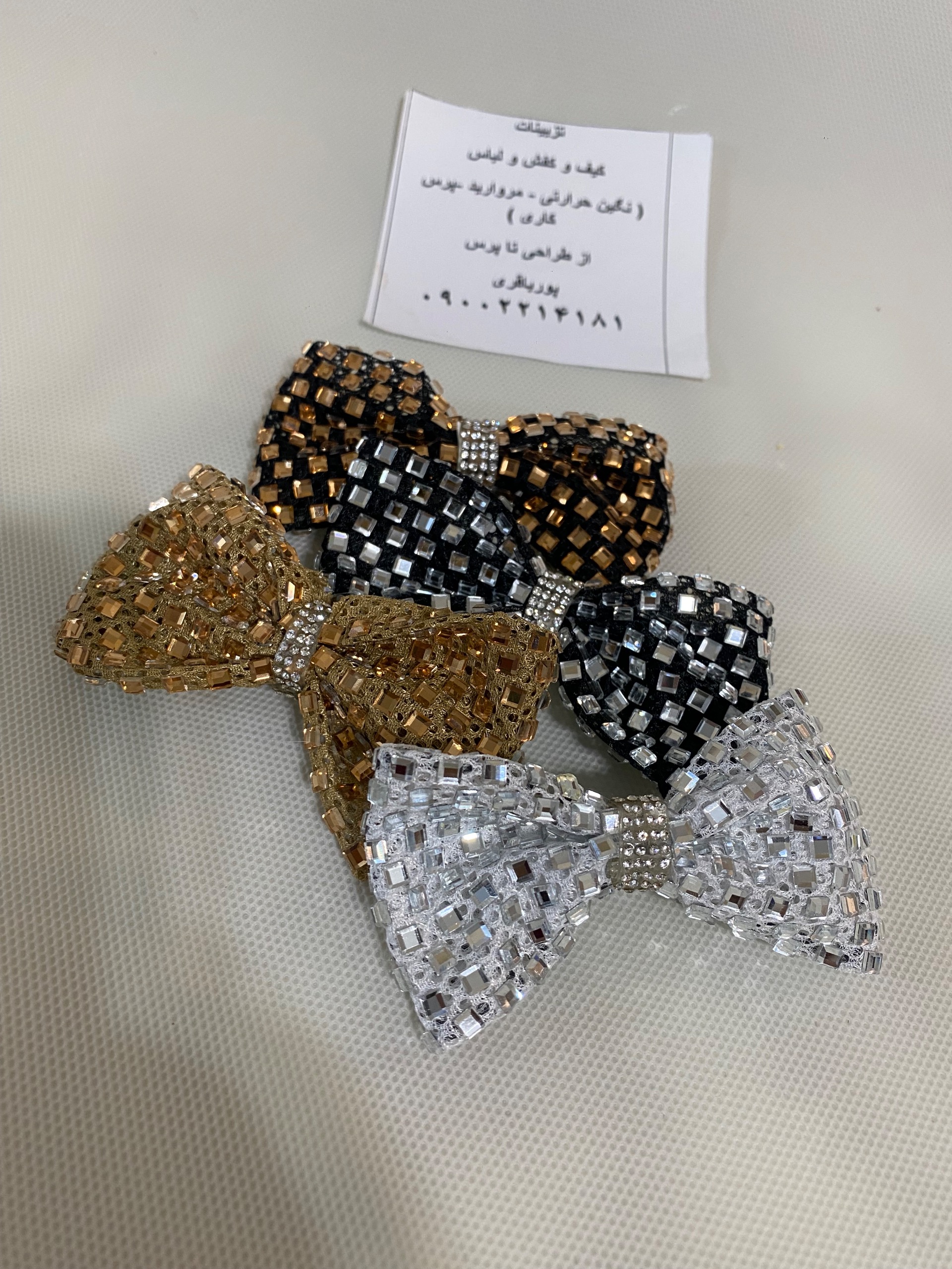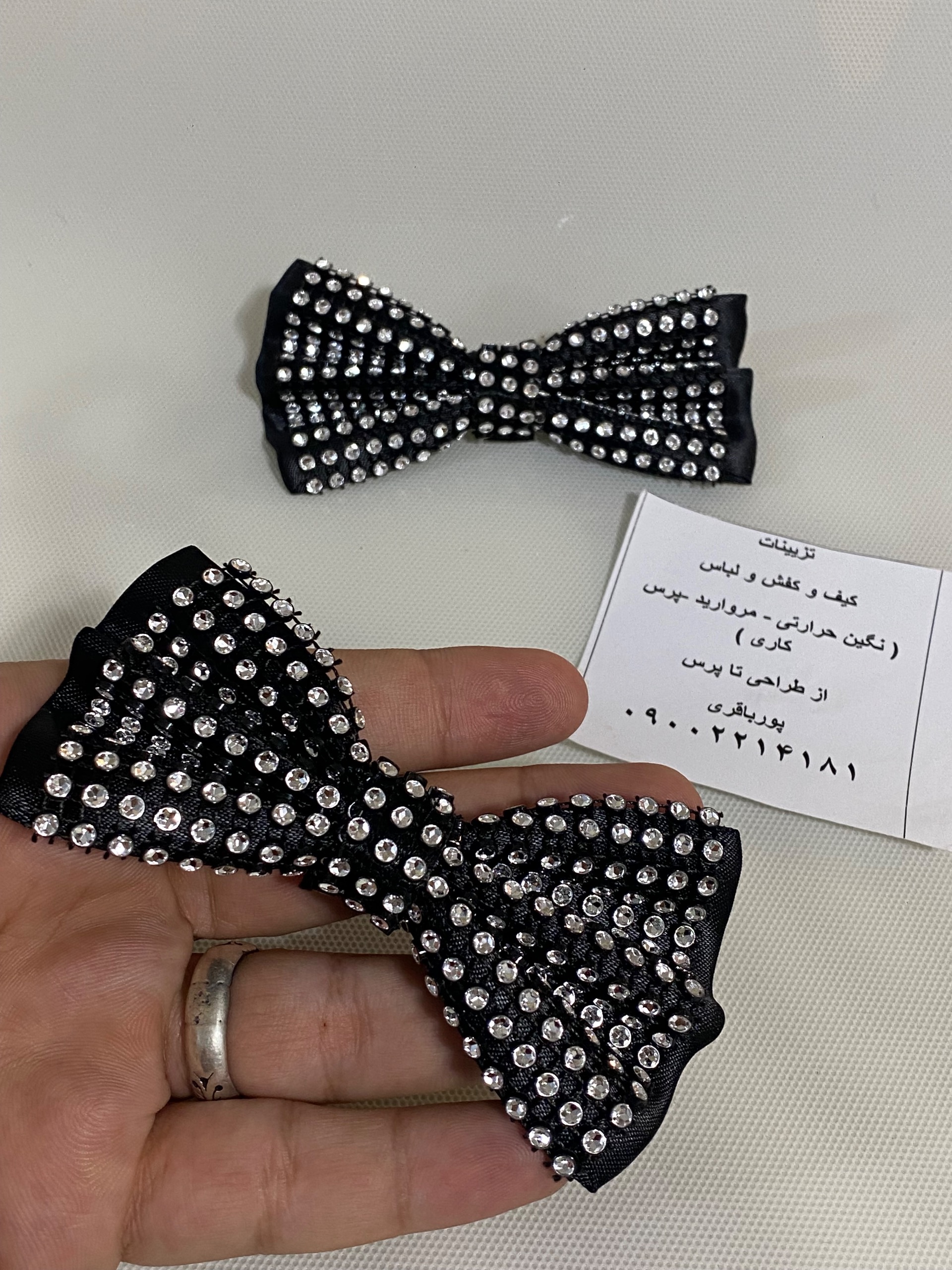 ساخت ست پاپیون و رویه کفش با نگین کاری دقیق
