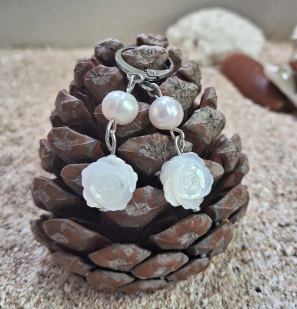 گوشواره زیبای صدف طبیعی گل برجسته کد E 471