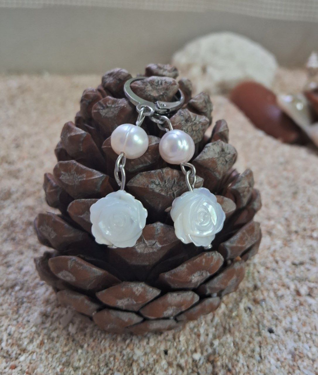 گوشواره زیبای صدف طبیعی گل برجسته