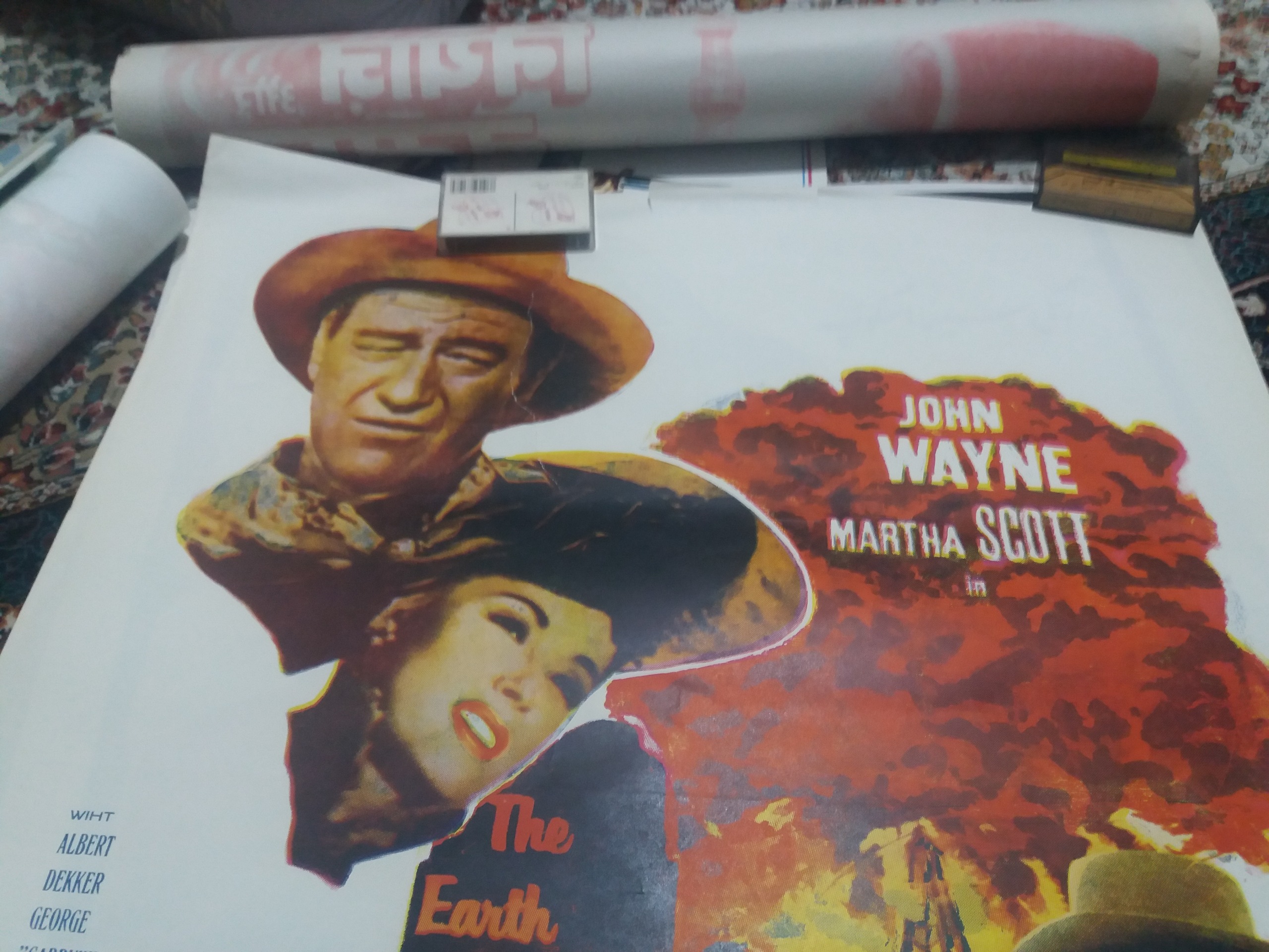 درود .. پوستر فیلمی از سوپر استار دهه چهل جان وین وووو . کمیابه و خیلی قدیمی .. دقت بفرمایید که قسمت کلاه جان وین پارگی داره که چسب میخوره بعدا گلگی پیش نیاد ..عکس اخر معلومه اگه دقت بکنی
