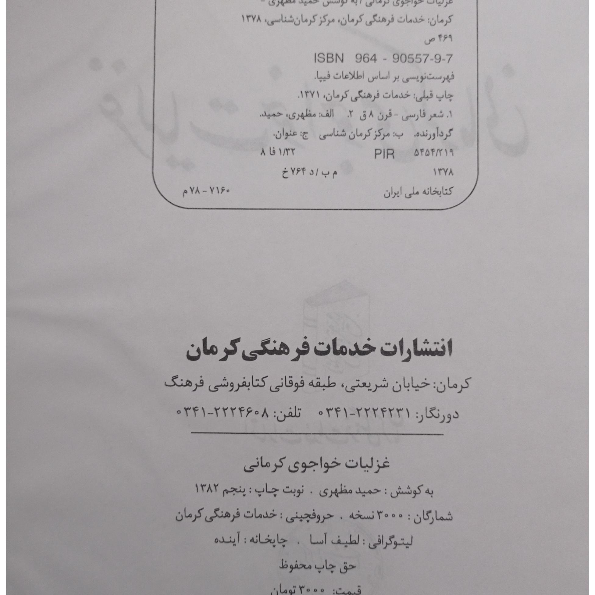 دیوان غزلیات خواجوی کرمانی انتشارات خدمات فرهنگی کرمان