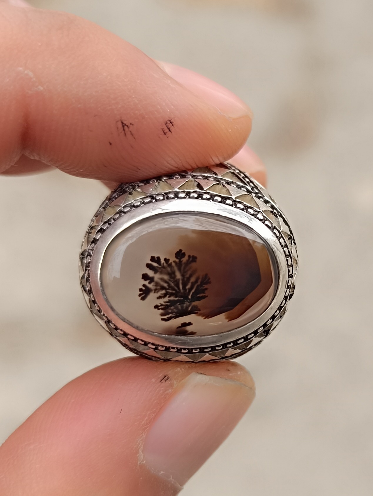 انگشتر نقره دستساز 22/70گرمی شجر طبیعی بسیار زیبا