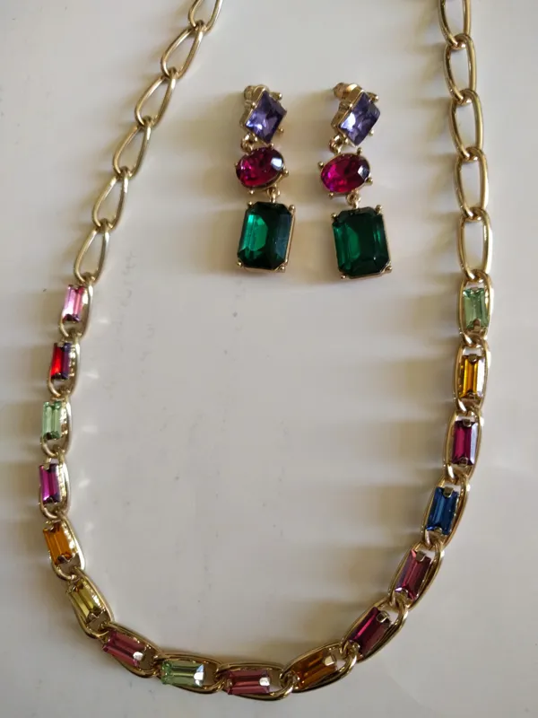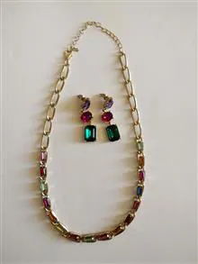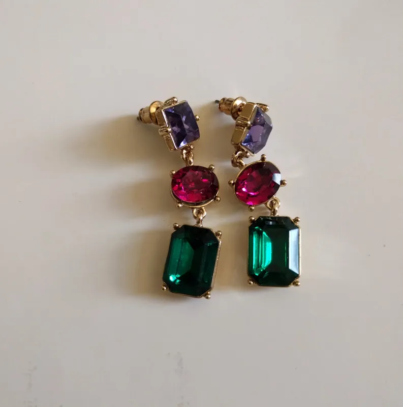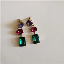 1 جفت گوشواره مجلسی مولتی کالر نگین رنگی بسیار زیبا به طول 4.5 سانتیمتر