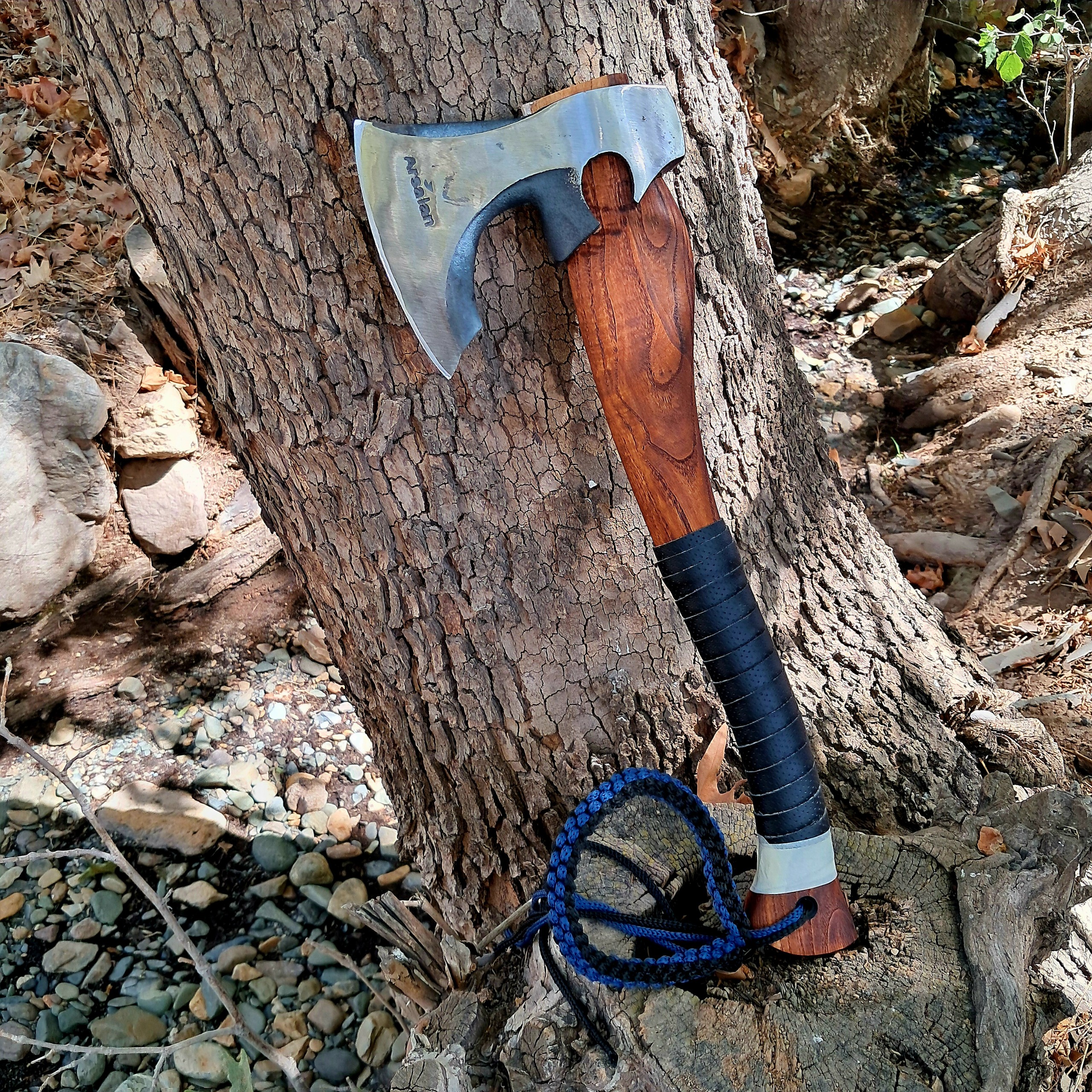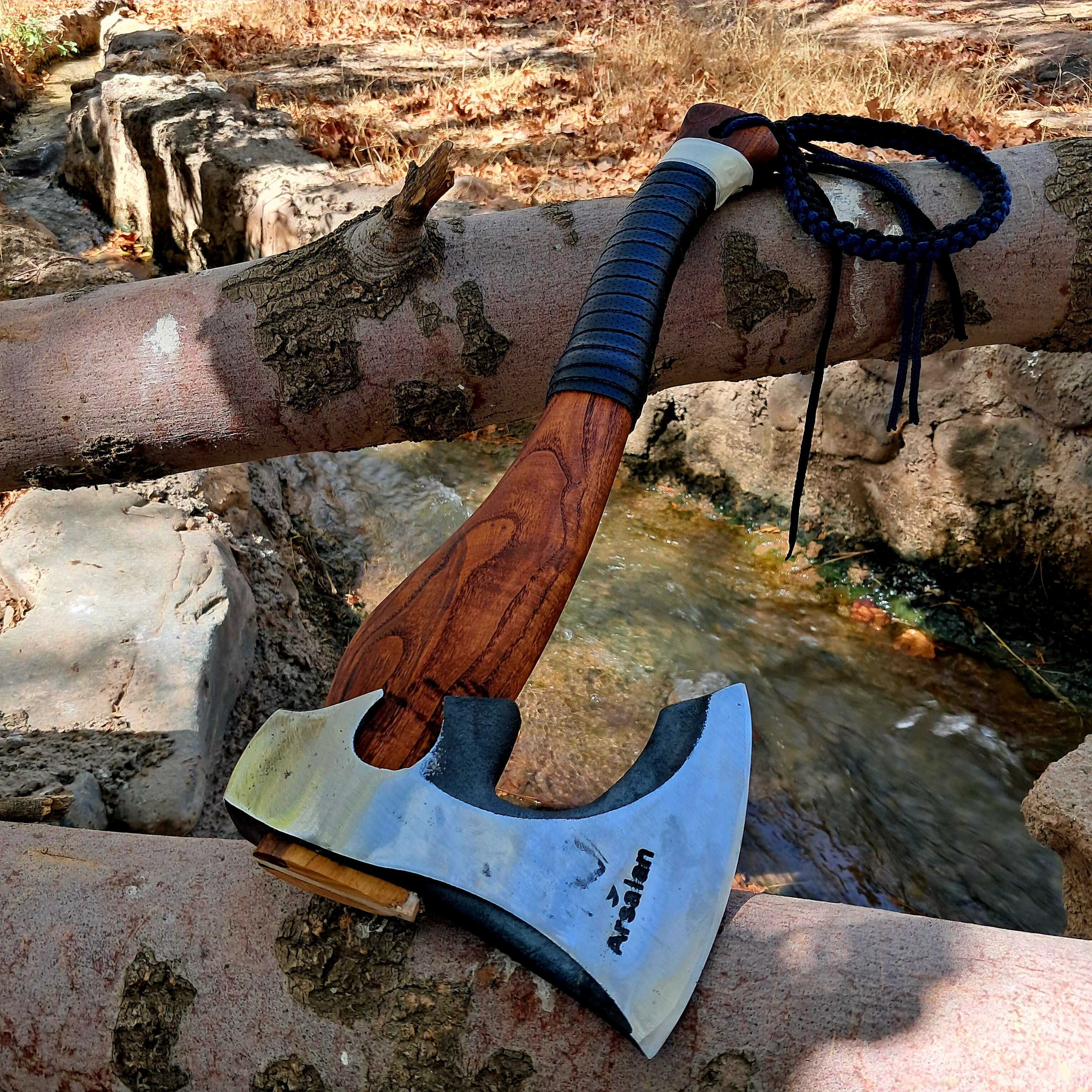 تبر ارسلان مدل T4 با دسته ی 60 سانتی و چرم دور کمر و بند 3 بعدی انتهای دسته