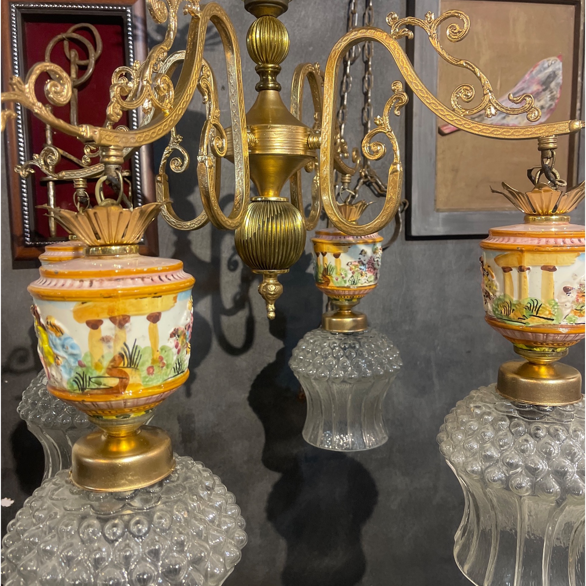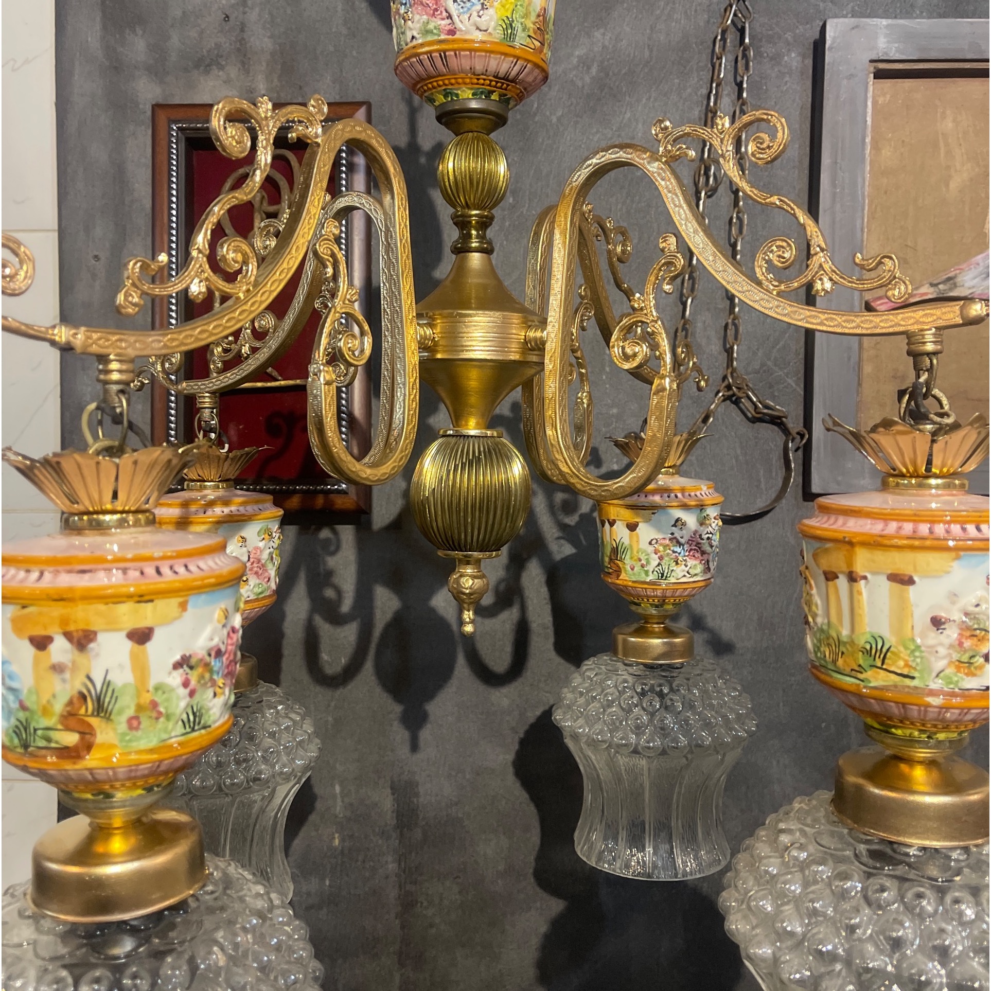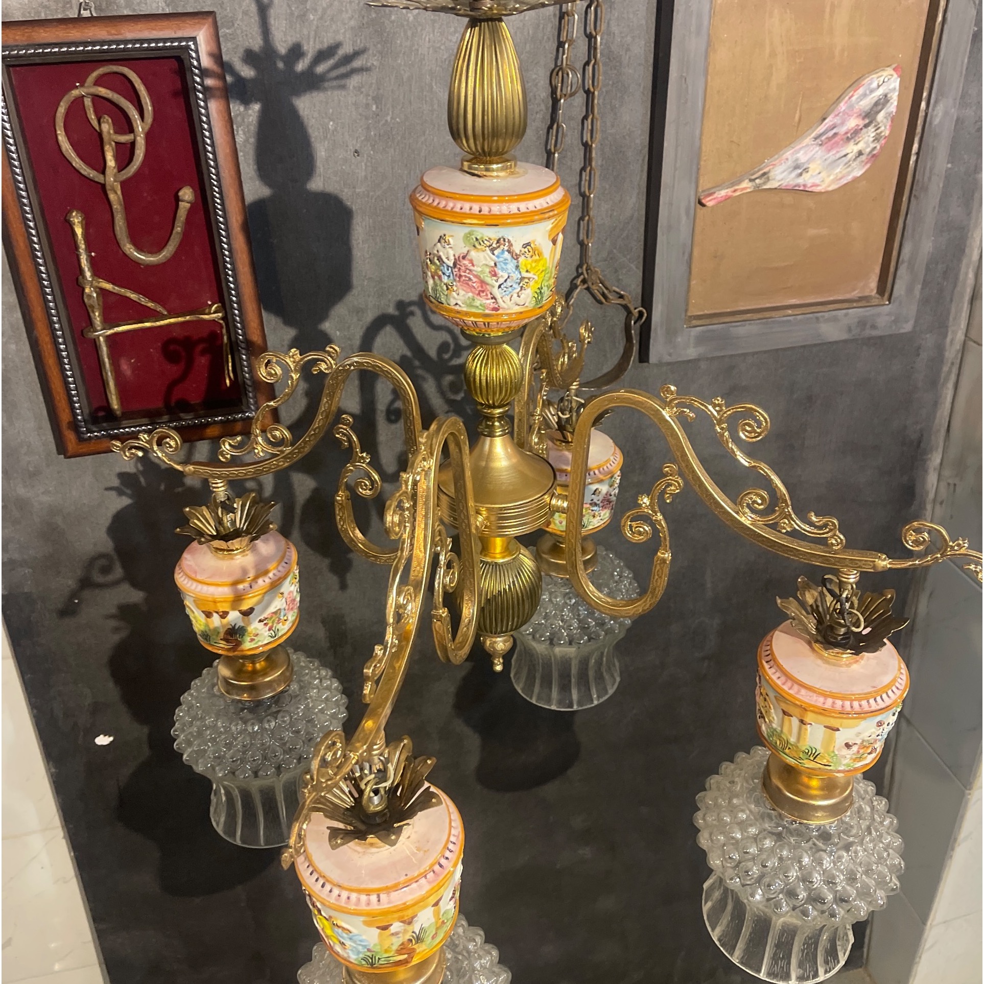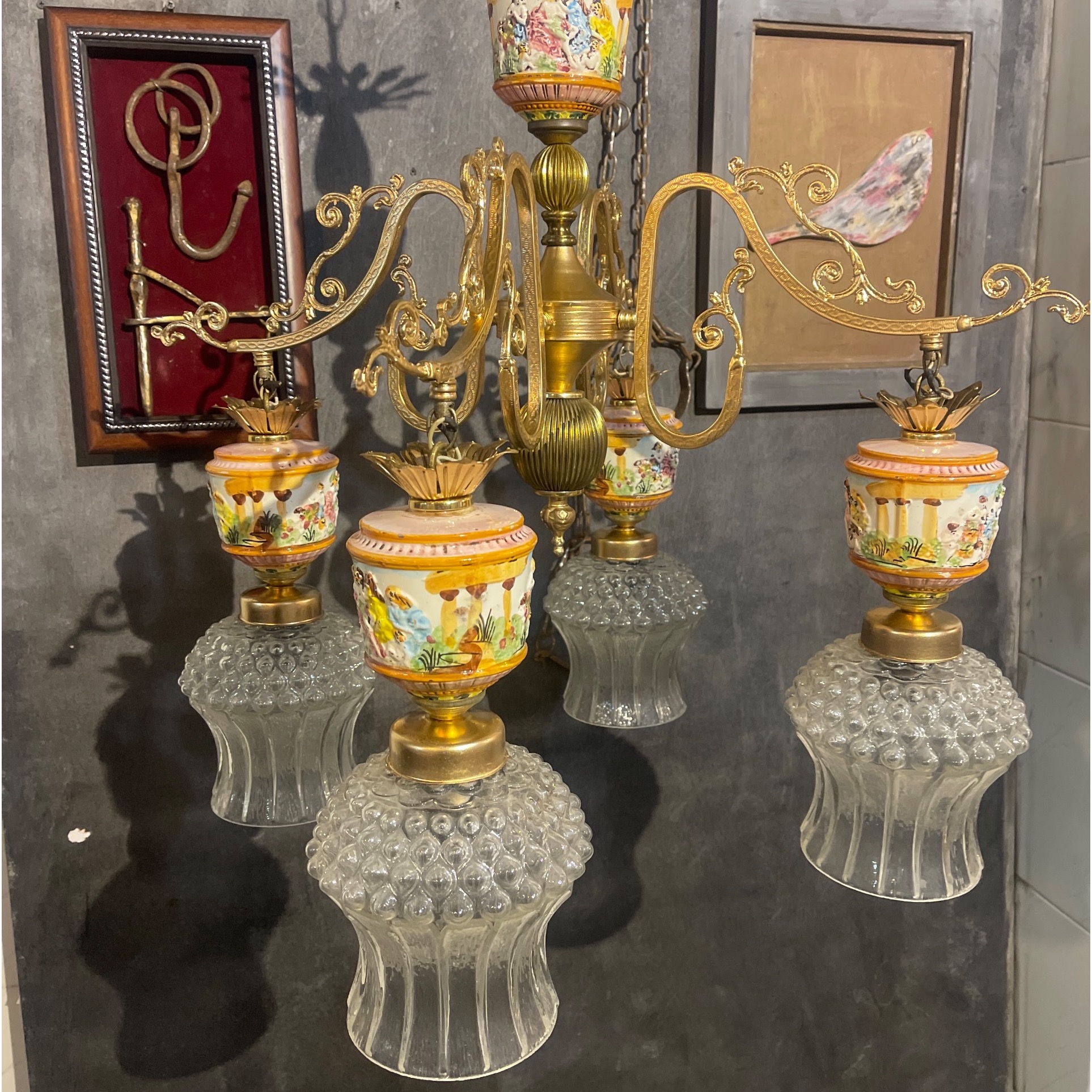 لوستر چهار شعله برنز قدیمی ایتالیا