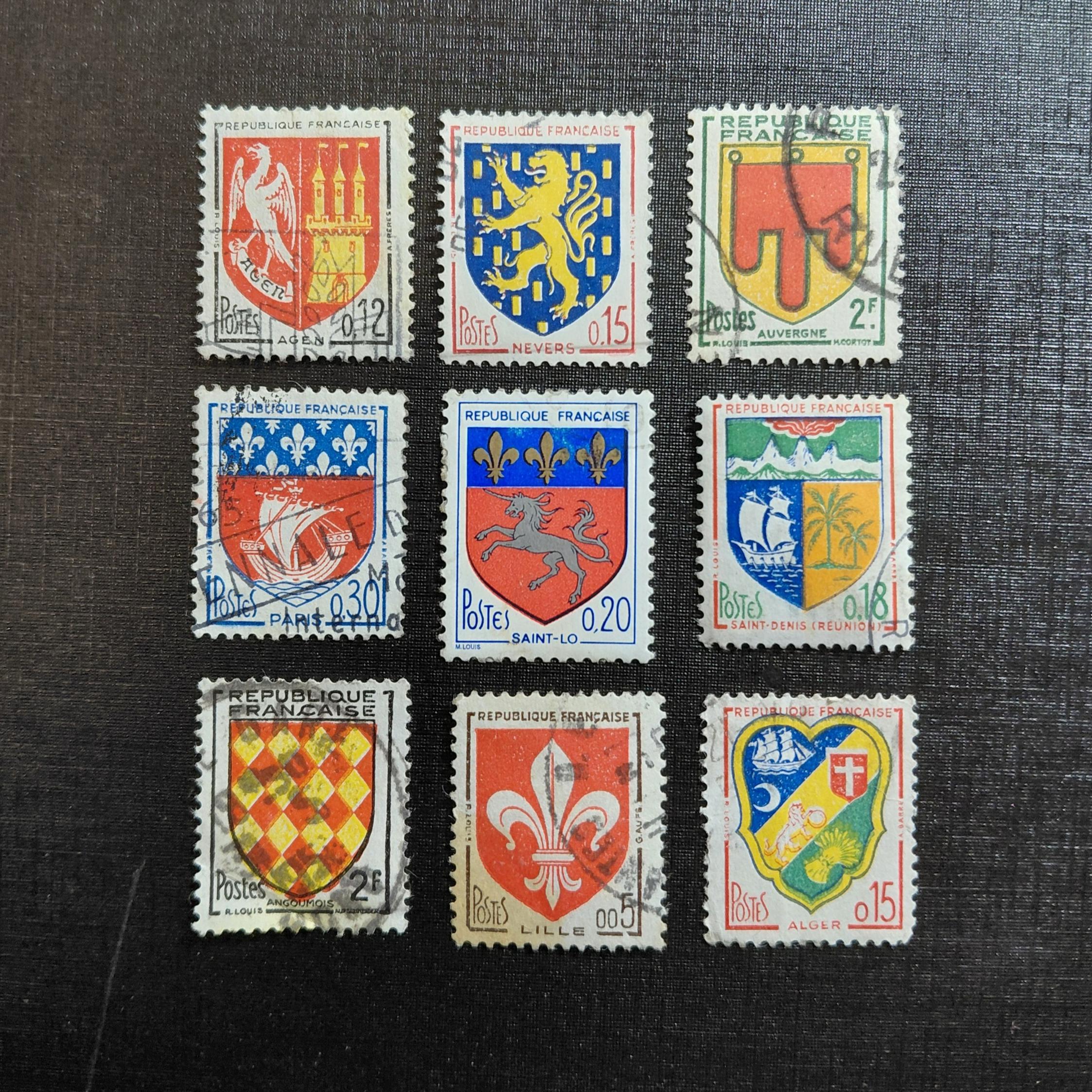 تعداد 9 عدد تمبر فرانسه قدیمی، سایز کوچک 1.5 در 2 شانت تقریبا، مطابق تصویر یکجا تقدیم می شود.