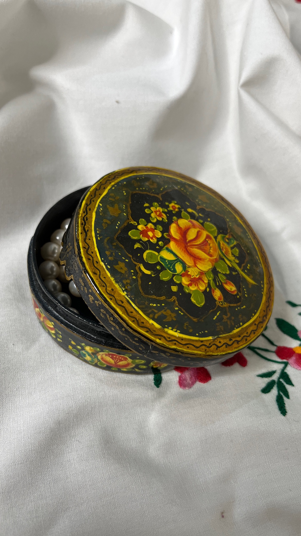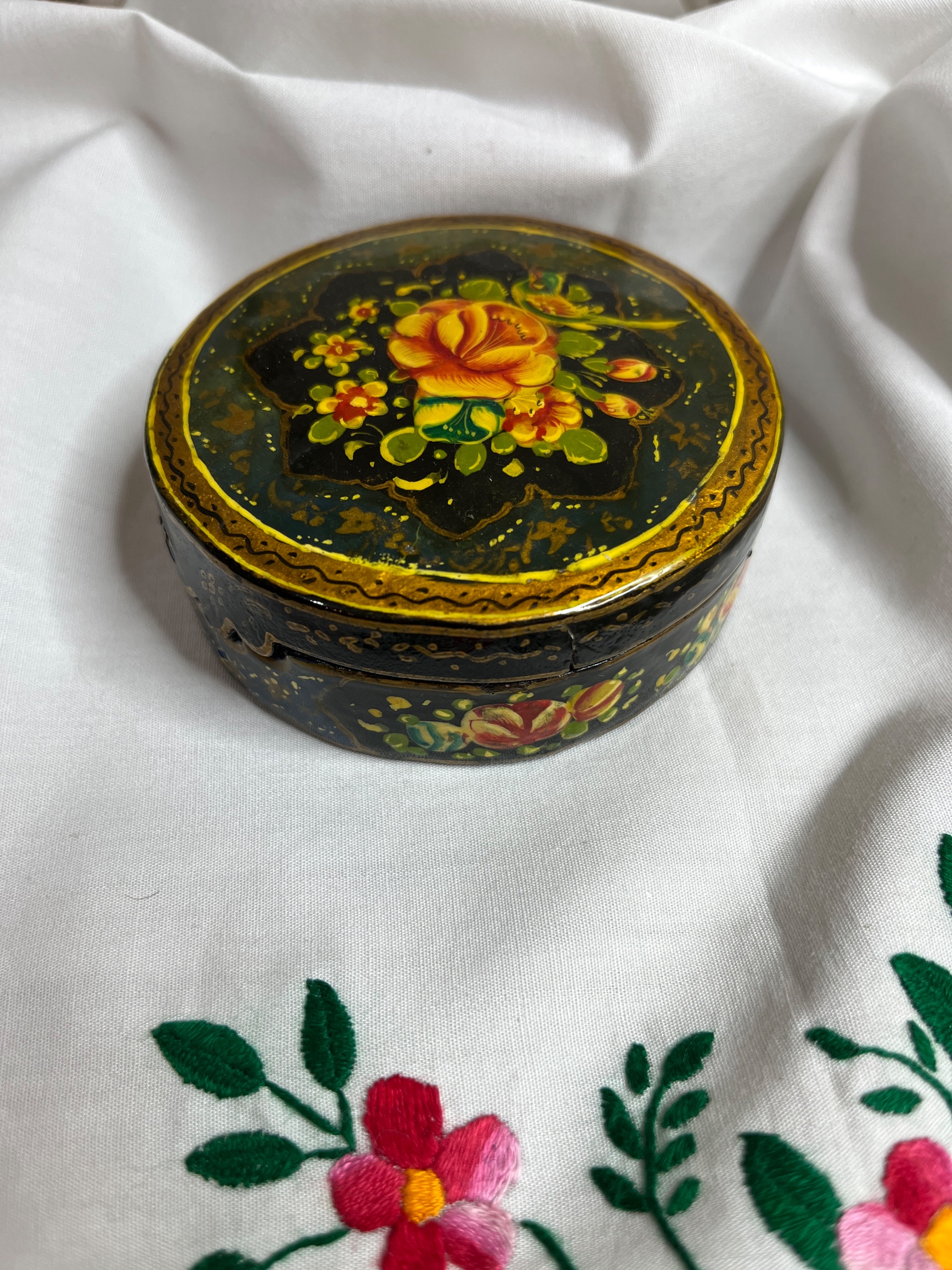 جاجواهری قدیمی پاپیه ماشه،نقاشی کار دست،قطر 8 سانت