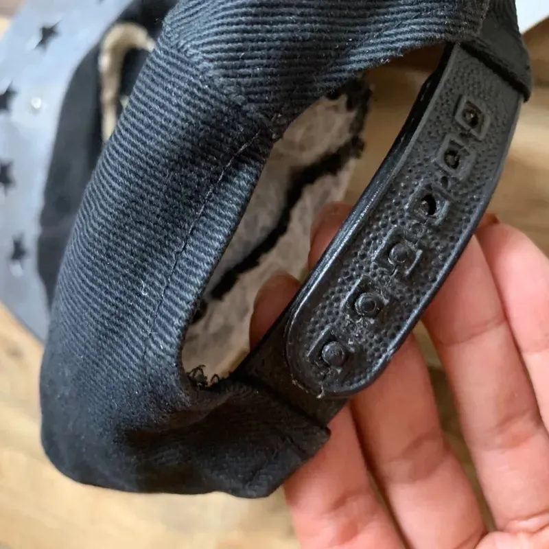 کلاه مشکی قسمت دنده های پشتش سه تای آخری ساییده شده مطابق تصویر اما قابل استفاده هستش و لبه اش فلز جلو ترک خورده که خیلی هم مشخص نیست