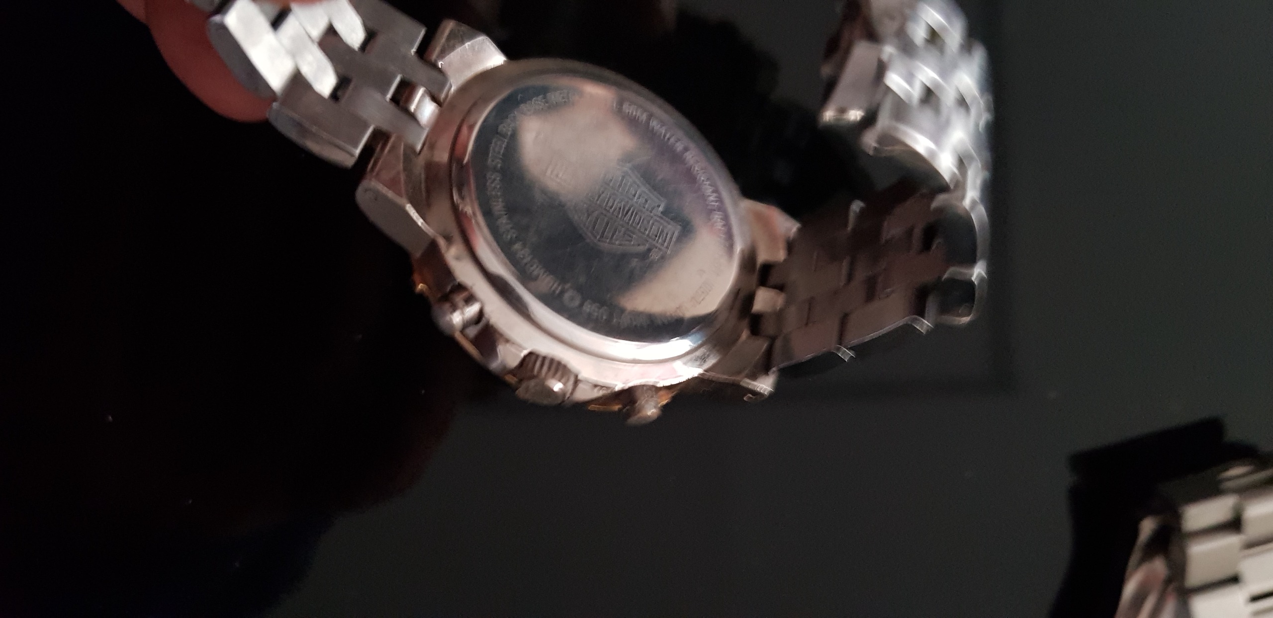 ساعت هارلی ددیویدسون غیر اصل با قطر 40 میلیمتر انتهای عقربه ثانیه شمار حروف HDمخفف هارلی دیویدسون بند و باتری نو با جعبه شیک ولی غیر اصل با لوگوی هارلی ارسال میشود.