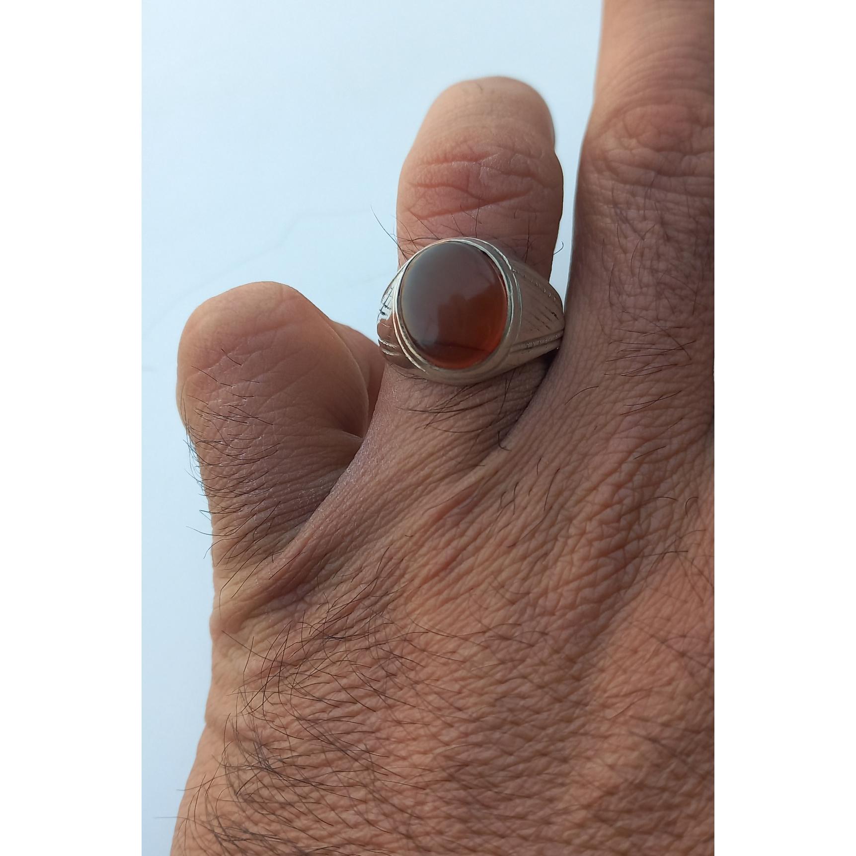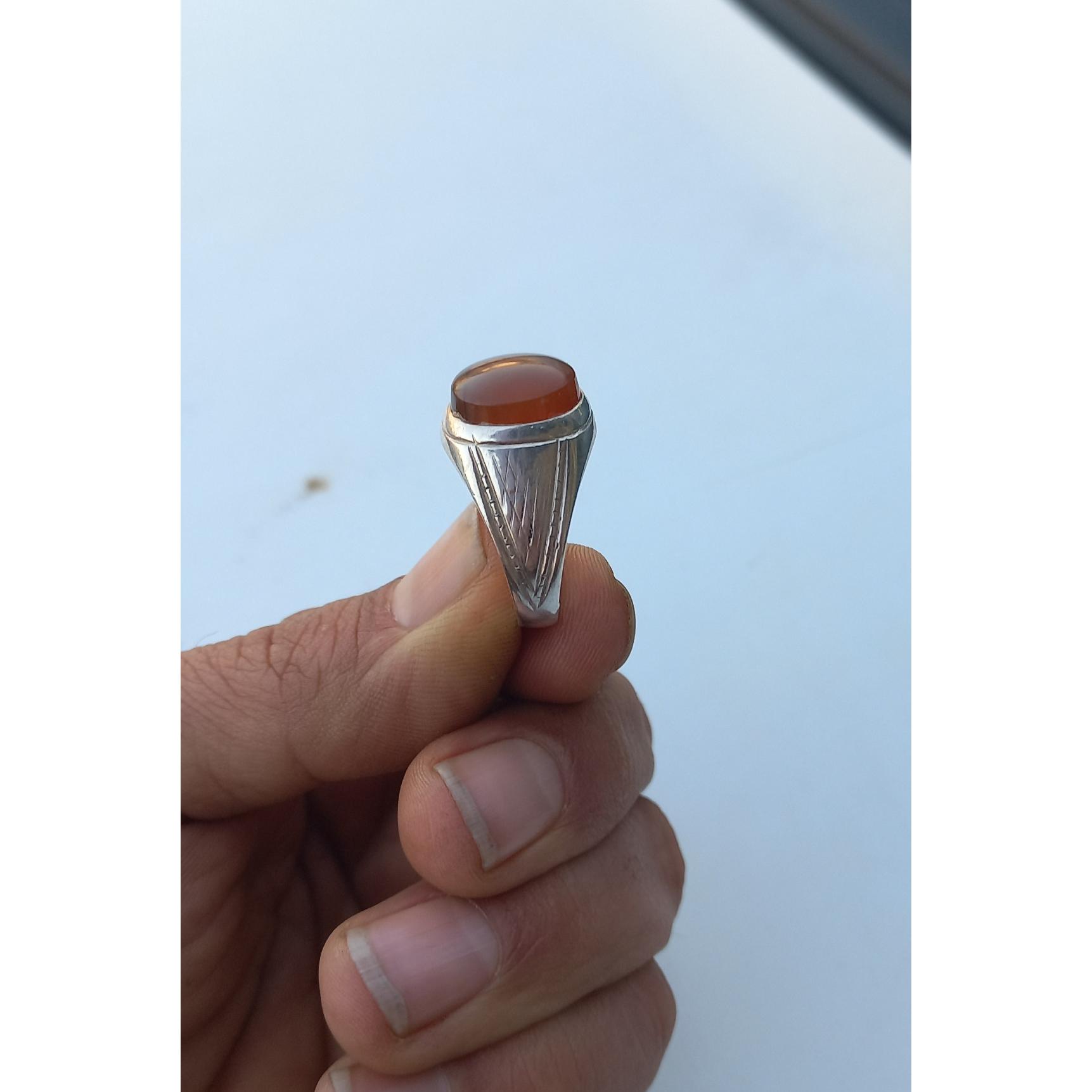 سلام انگشتر عقیق کهنه سنگ فابریک به شرط کهنه رکاب دستساز نقره925 عیار بالا سایز 62 63