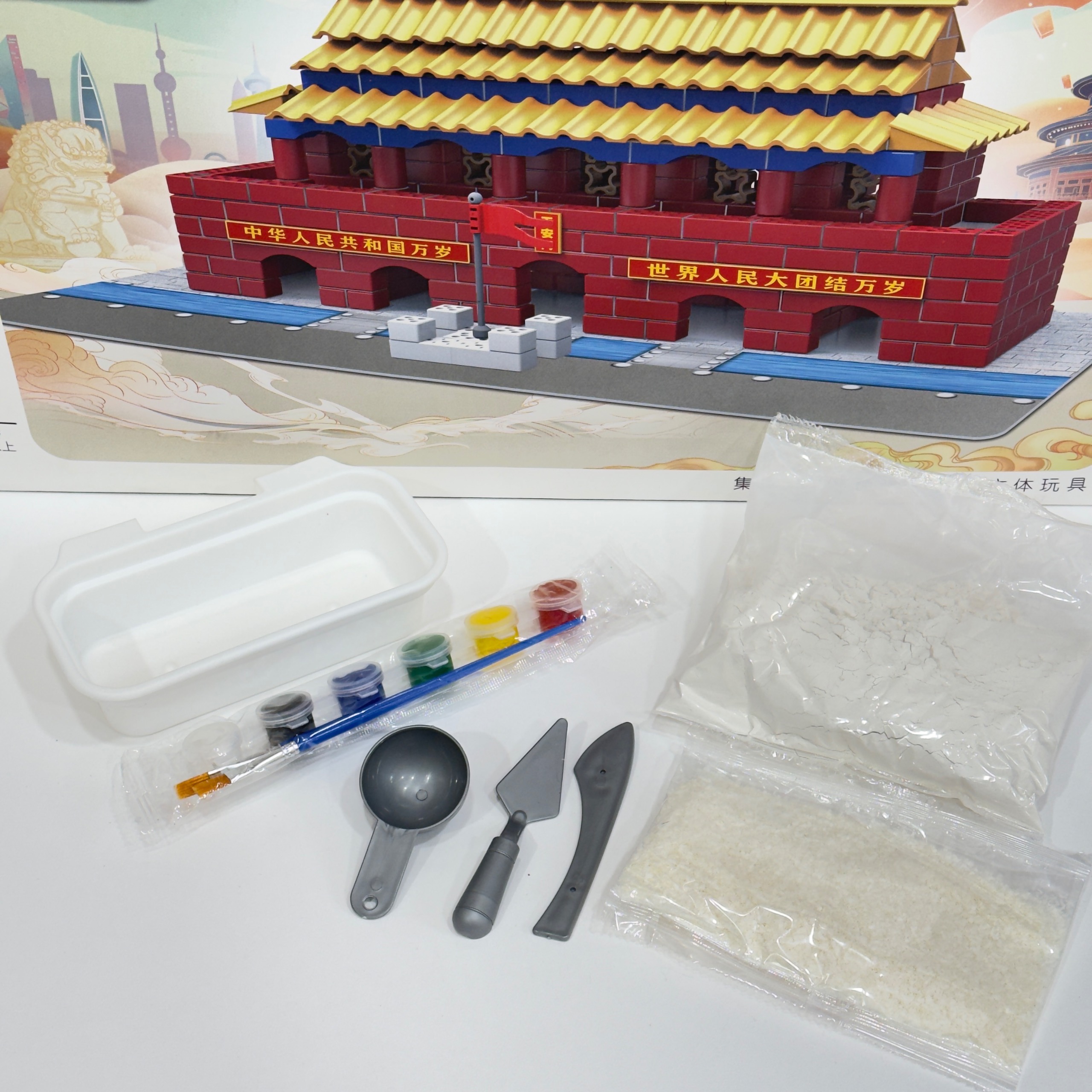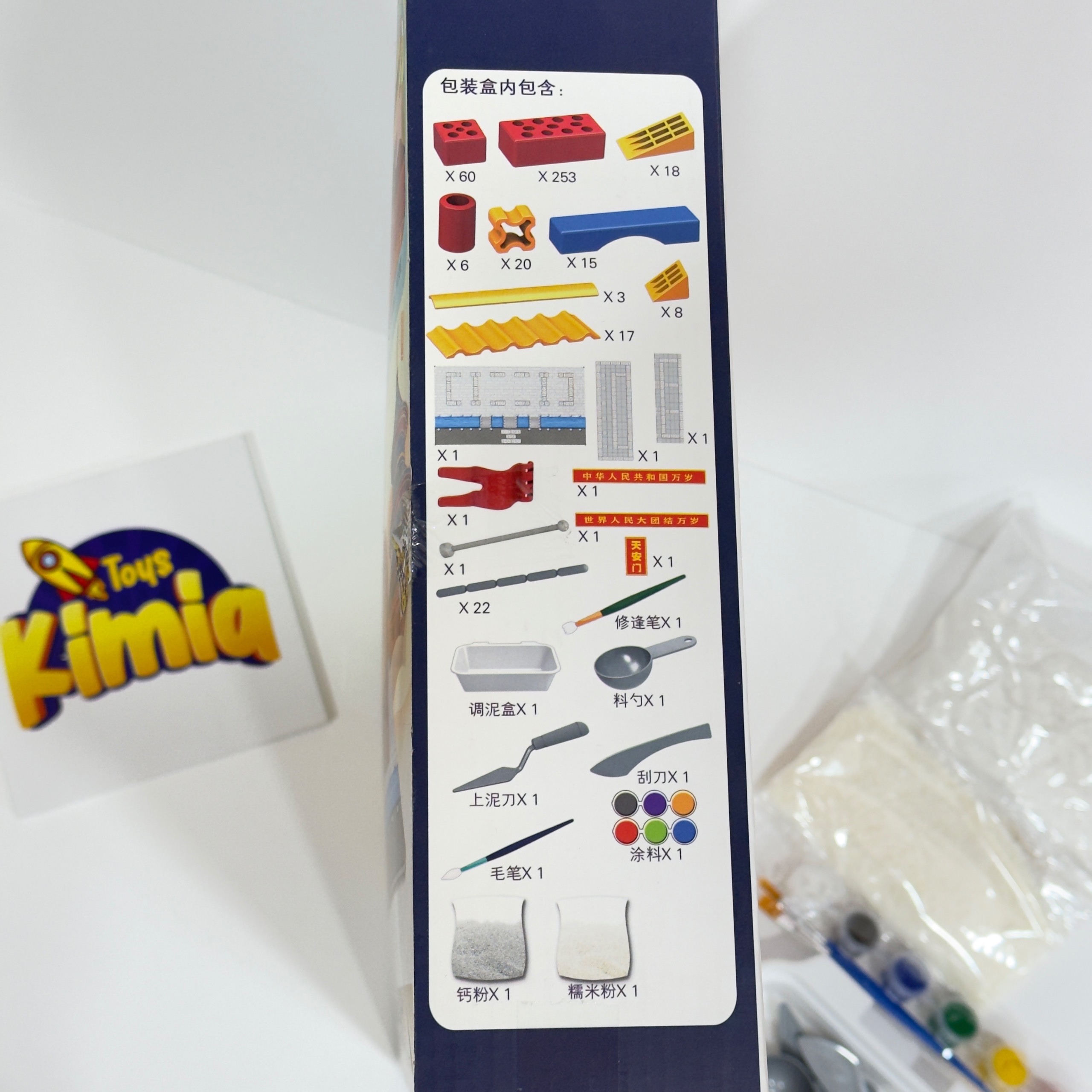 این محصول با شبیهسازی دقیق فرآیند آجرچینی، به کودک اجازه میدهد تا با استفاده از آجرهای کوچک، ملات، شن و ابزار مخصوص، یک سازه واقعی اما در مقیاس کوچک بسازد.