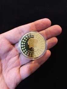 ضرب کانادا، جنس برنز، روکش آب طلا ،قطر 4سانتیمتر با کپسول محافظ