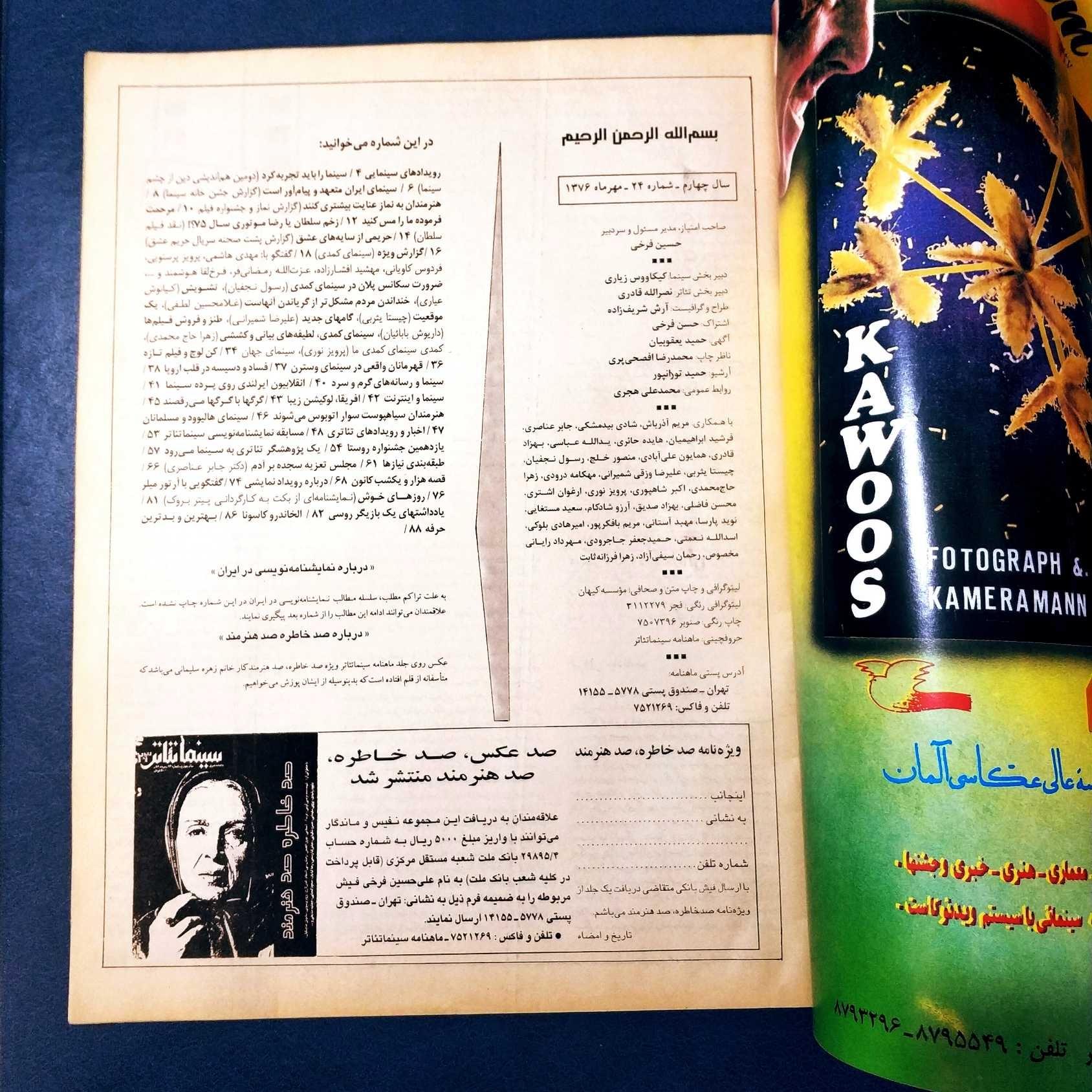 سینما تئاتر شماره 24 مهرماه 1376 مطابق تصاویر
