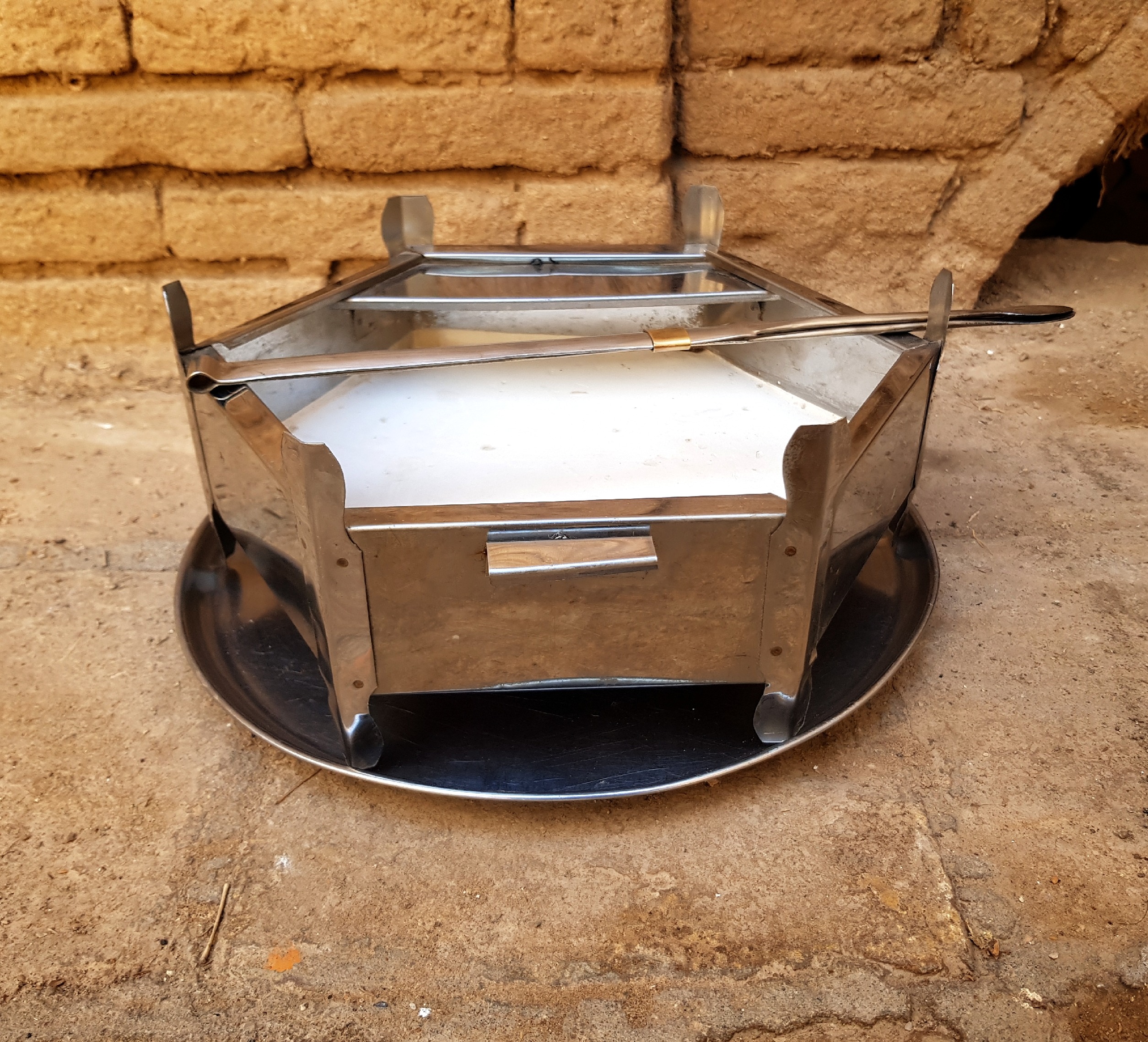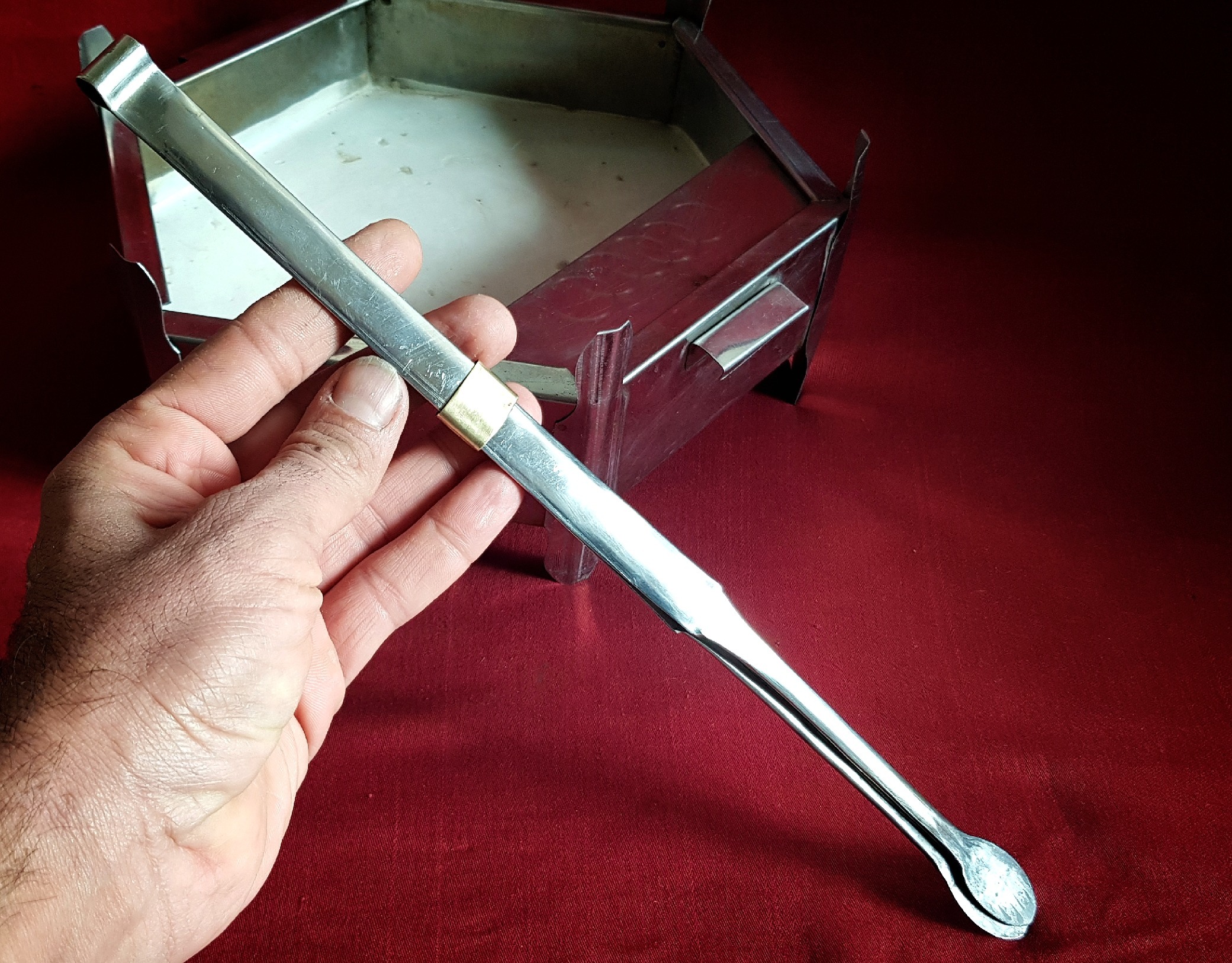 منقل استیل بهمراه سینی و انبر ذغال گیر استیل
