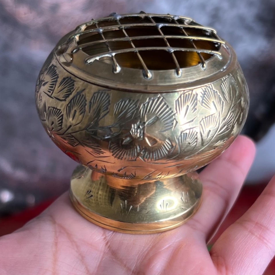 کانز برنجی سایز کوچک قلمکاری شده بسیار زیبا و قابل استفاده کنار سینی چای و روی میز (جای گل طبیعی و گل های خشک )