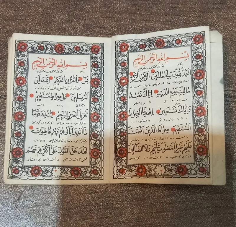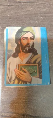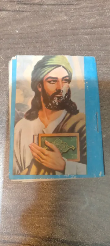 قران کوچک طبق عکس که جلد ان عکسهای حضرت علی ع است قران خیلی قدیمی اس در اثر قدمت عکسها کمی همانطور که مشهود است رنگ رفتگی دارن شماره تلفن داخل جلد 5 شماره است که گویای قدمت کالا است فروش بر مبنی عکسهاست قدمت بالای 60 سال است کالا نونواست ولی بعلت قدیمی