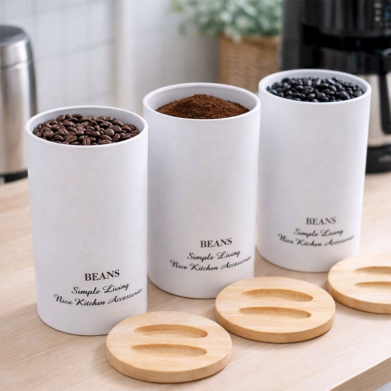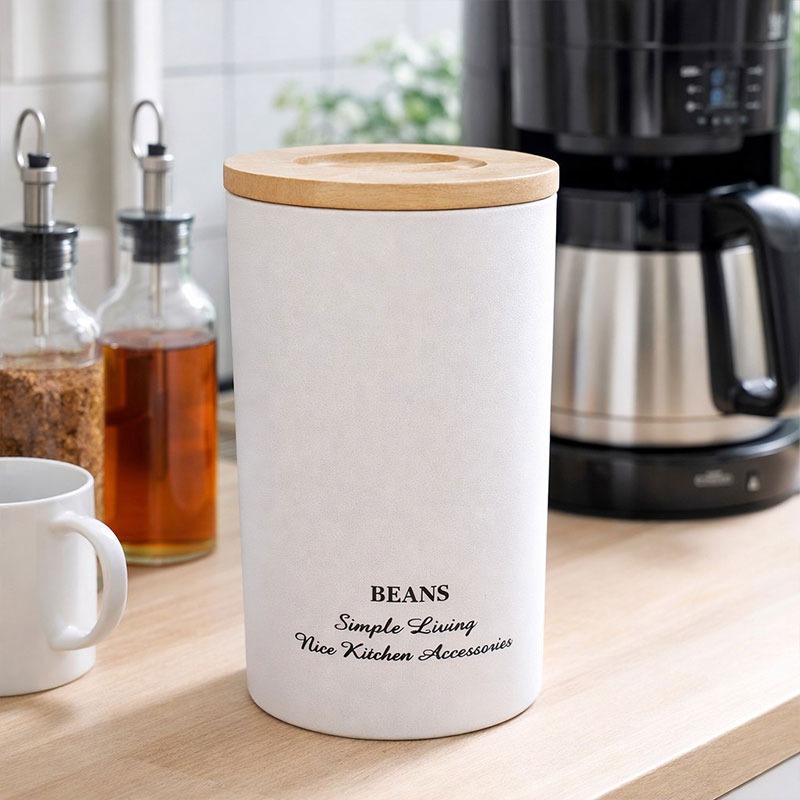 بدنه بانکه مدل مگنتی طرح BEANS فلزی است و جنس درب آن چوبی است. در حاشیههای در مگنتهایی تعبیه شده است تا به خوبی بر روی بانکه قرار گیرد. همچنین برای برداشتن آن شیارهایی روی بانکه طراحی شده است. قطر بانکه حدود 10 سانتیمتر و ارتفاع آن حدوداً 19 سانتیمتر است. از این بانکه میتوان برای انواع مواد غذایی خشک استفاده کرد.
