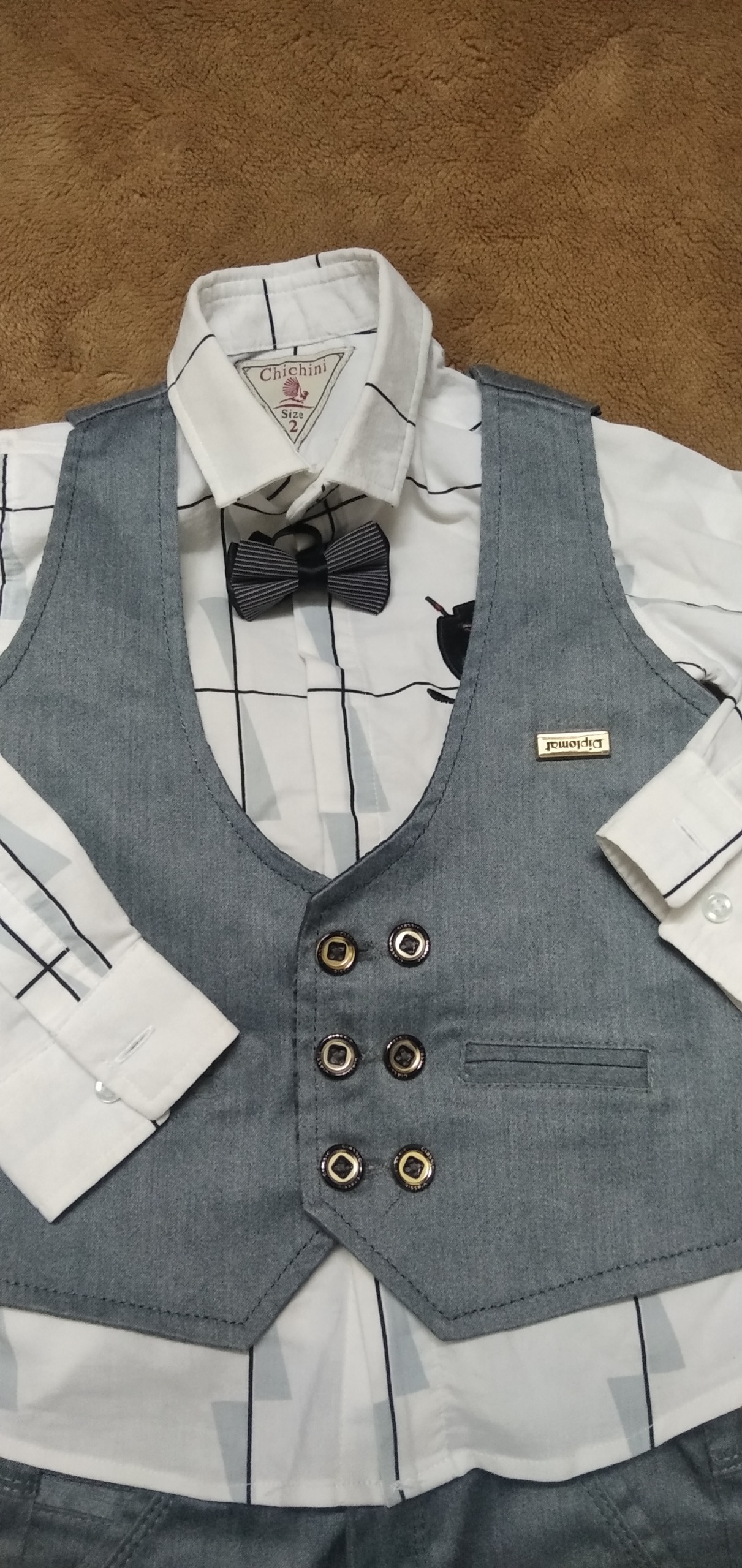 ست سه تیکه پسرانه جنس خوب بسیار شیک همراه با پاپیون
