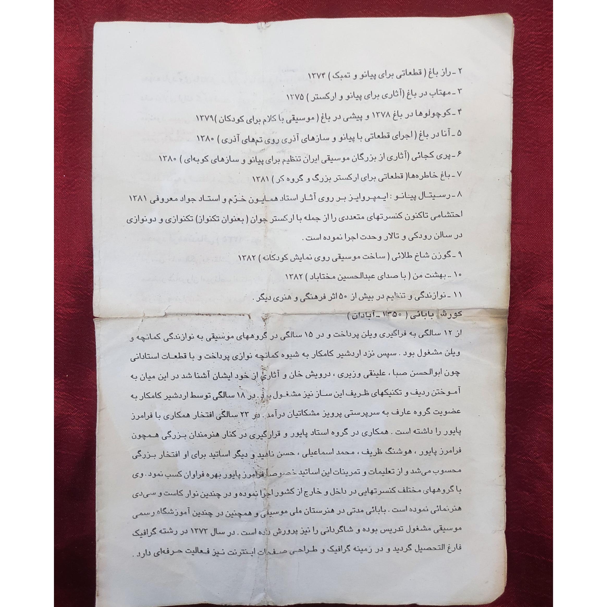 برگه ی تبلیغ کنسرت موسیقی ایرانی