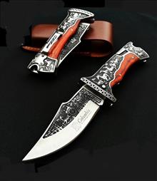 چاقو طرح شکارگاه با طراحی برجسته سیاه قلم کاملا ثابت