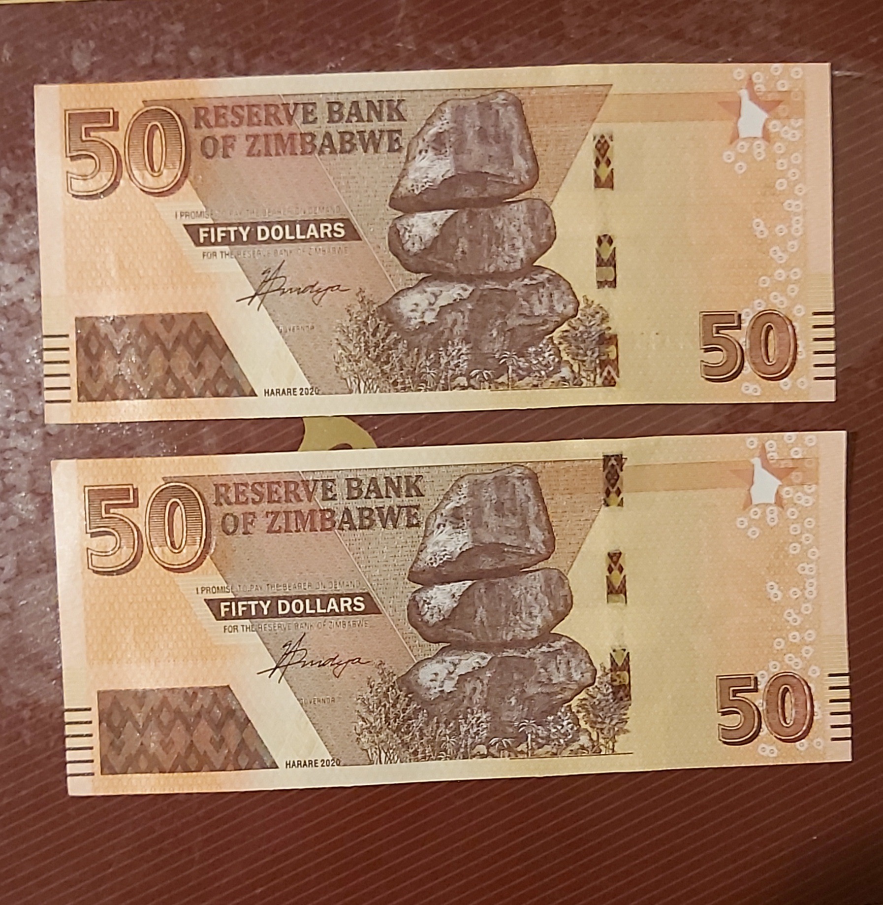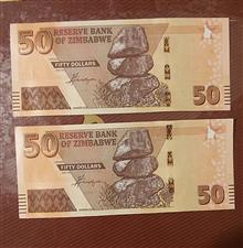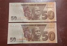 اسکناس 50 دلار زیمباوه 2020 بانکی بصورت شماره جفت