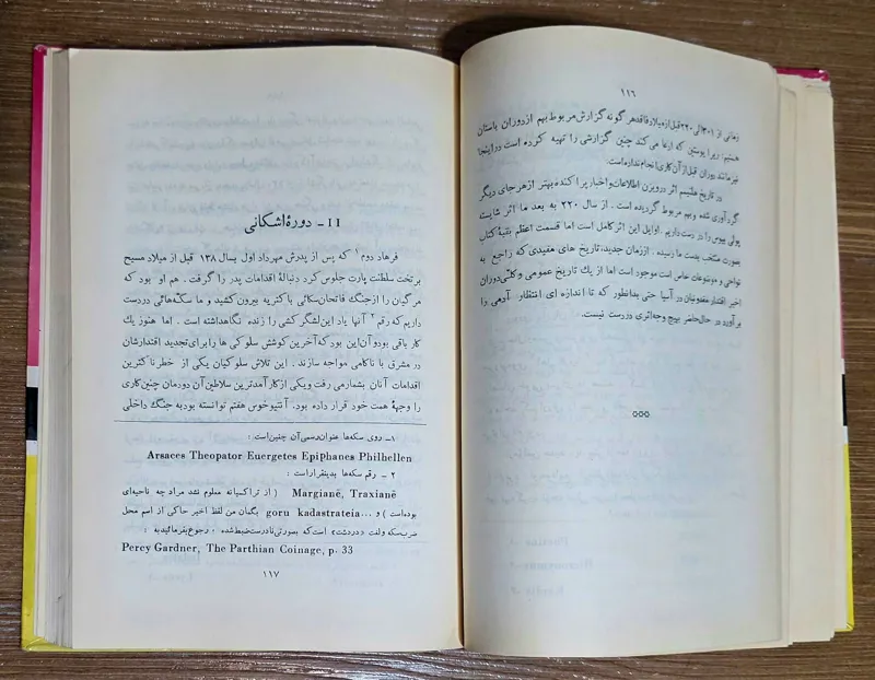 مطالب کتاب فاقد تقسیمبندیهای موضوعی است و صرفا در دو بخش دوره مقدونی و دوره اشکانی شکل گرفته است و در هر بخش به بررسی جنبههای دیگر تاریخ این دوره از جمله اوضاع فرهنگی, دین و اعتقادات, اوضاع اقتصادی, سازمان و تشکیلات اداری و نظامی, هنر و سایر وجوه تمدن در متن اشارتی نشده است .