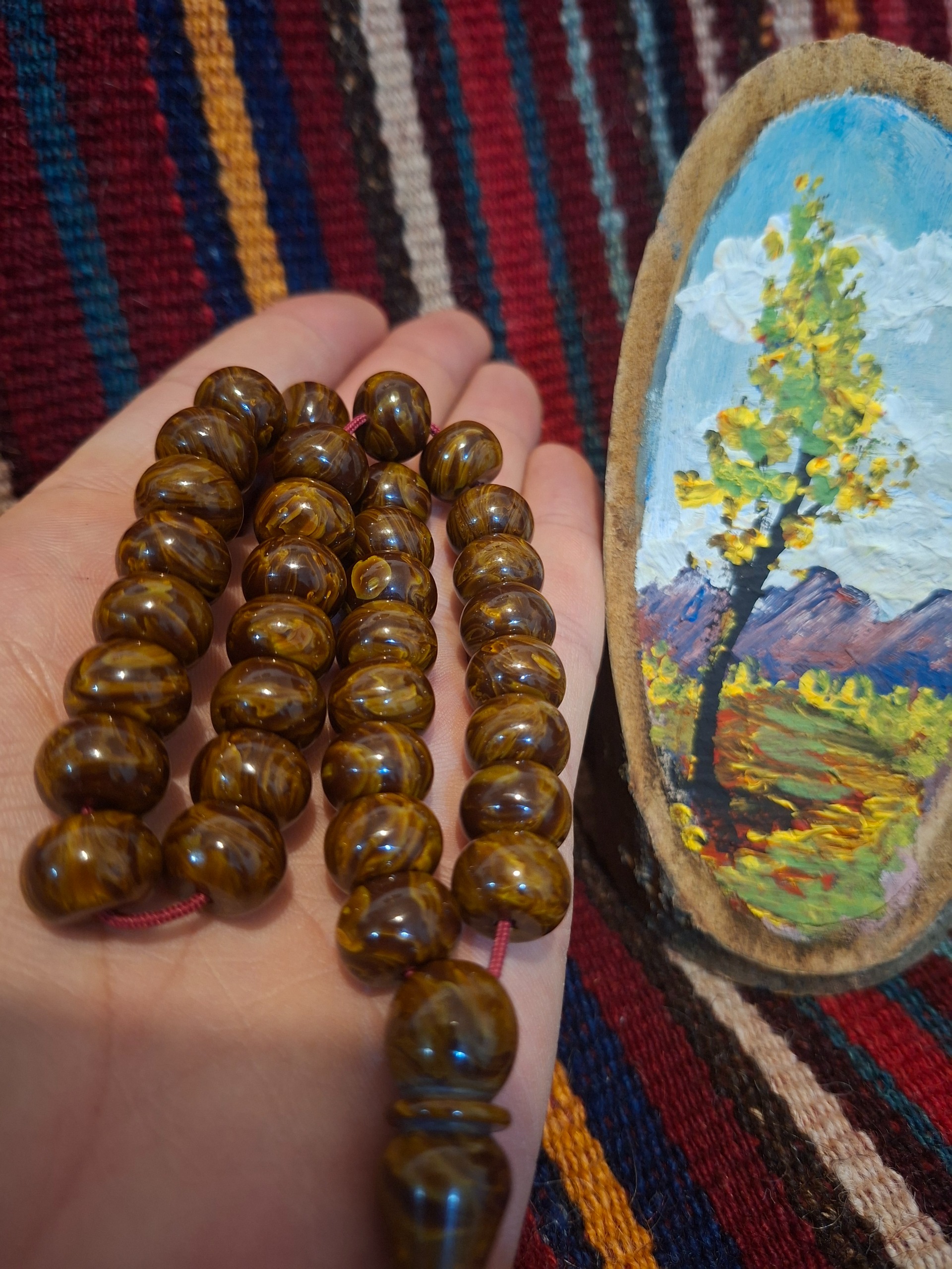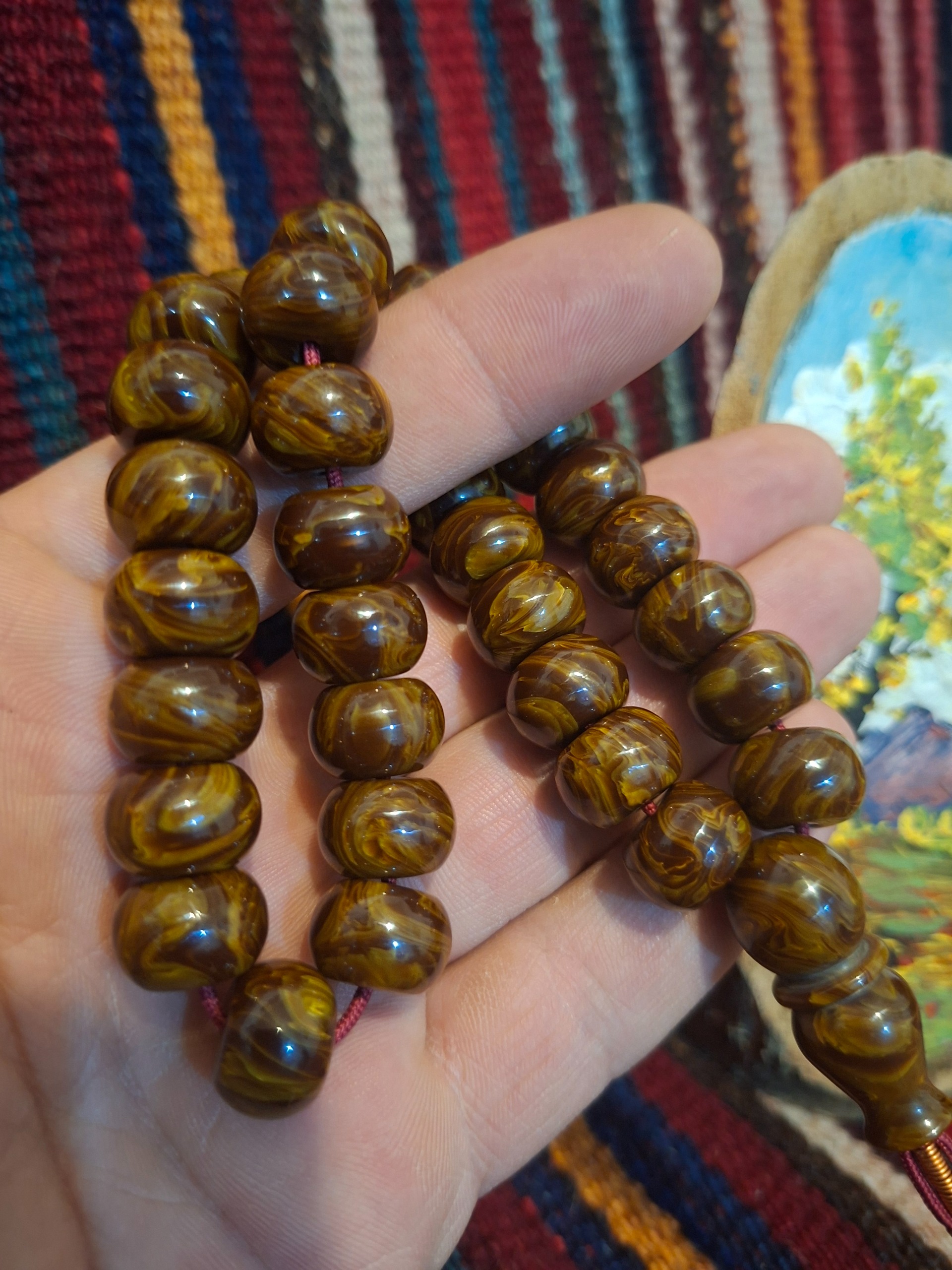 تسبیح کهربای گردویی زیبا و بینظیر