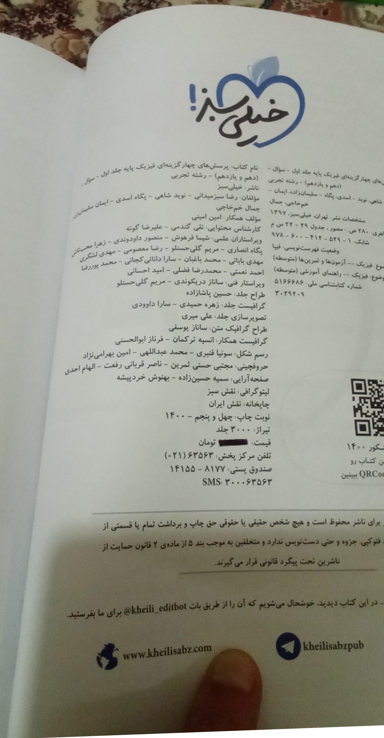 فیزیک پایه تجربی 10و11دوجلدی خیلی سبز1400.کد603