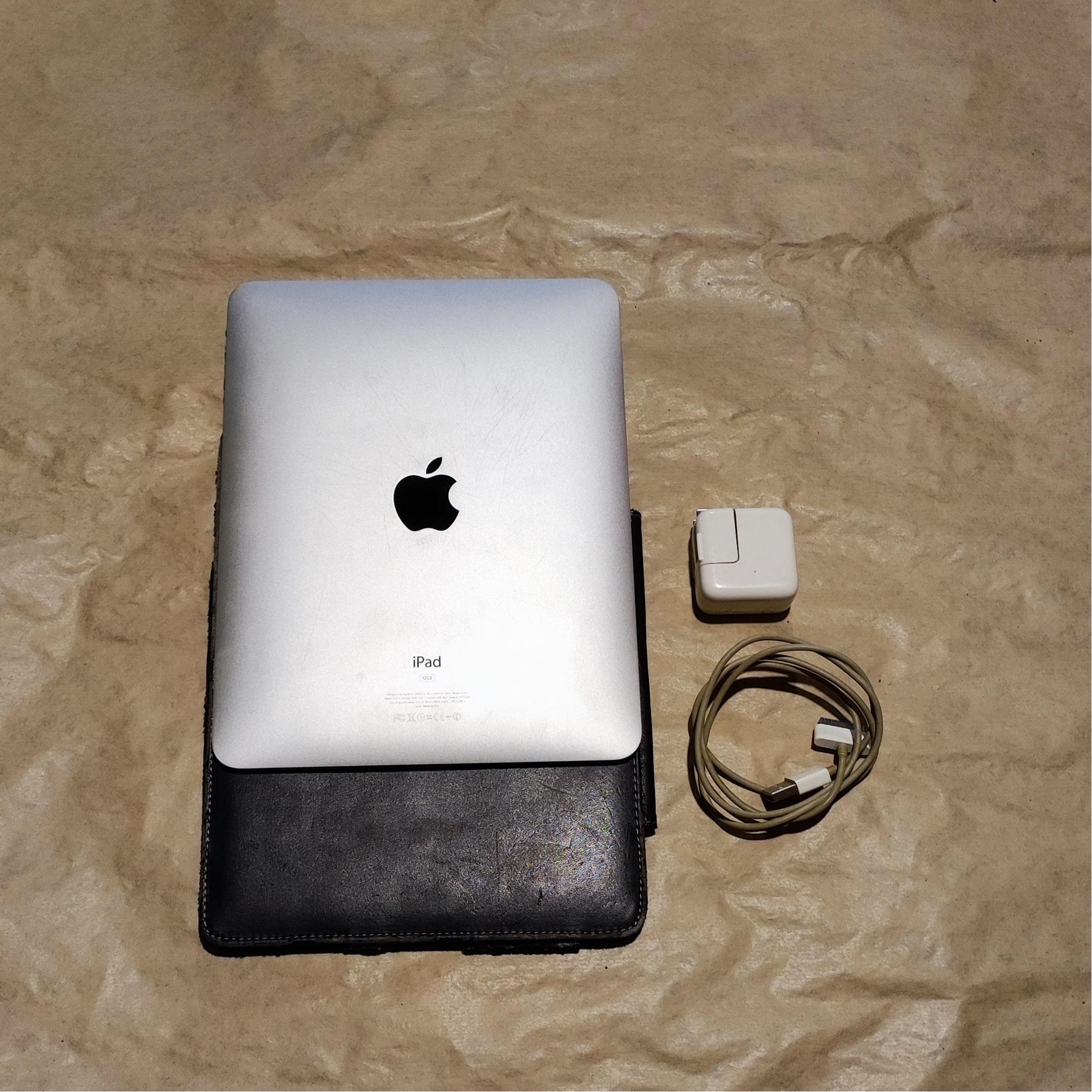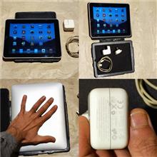 لوازم جانبی شارژر و کابل فابریک و یک کاور چرم مصنوعی که کاور کمی زدگی دارد خیلی تمیز نیست .