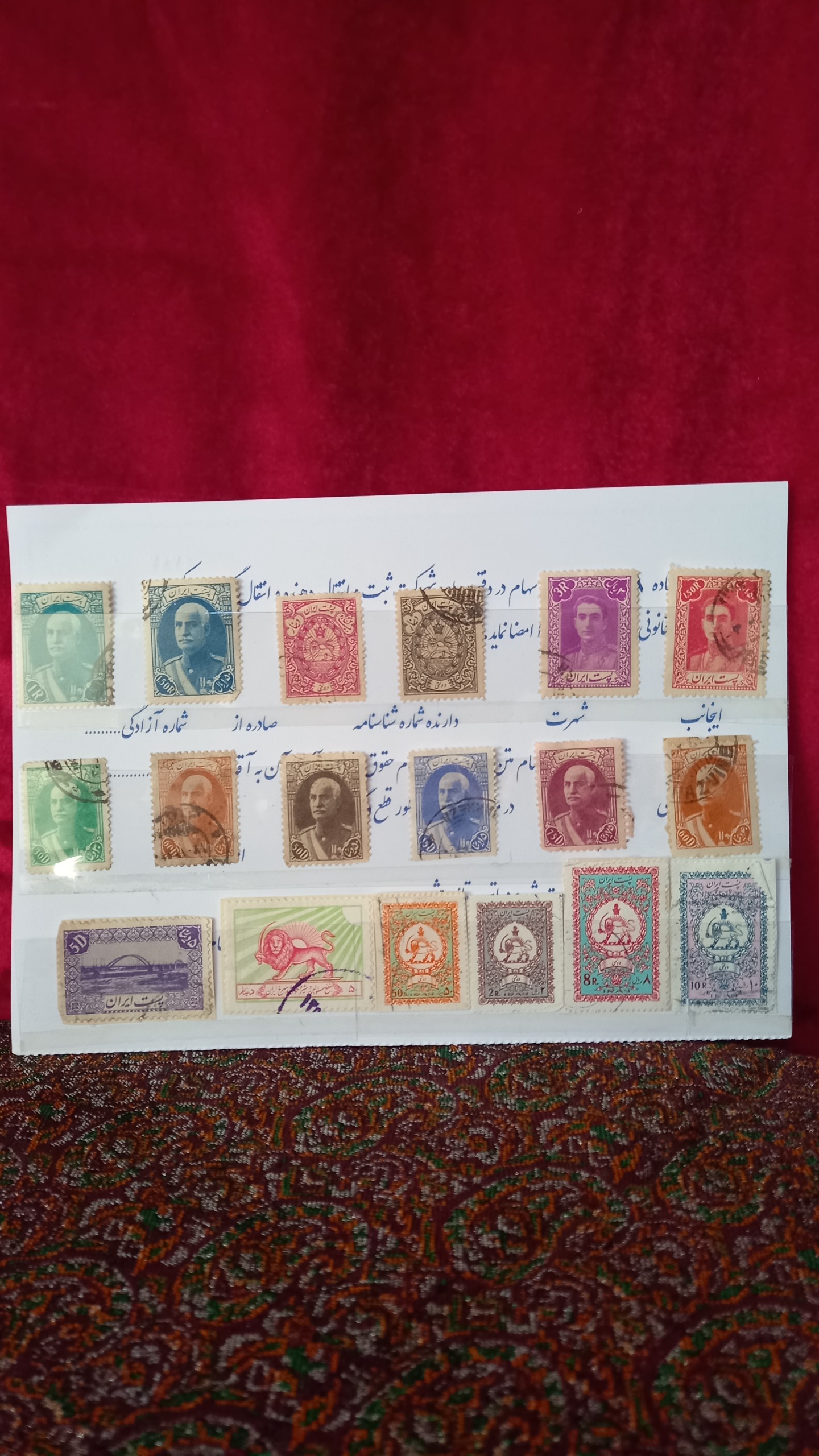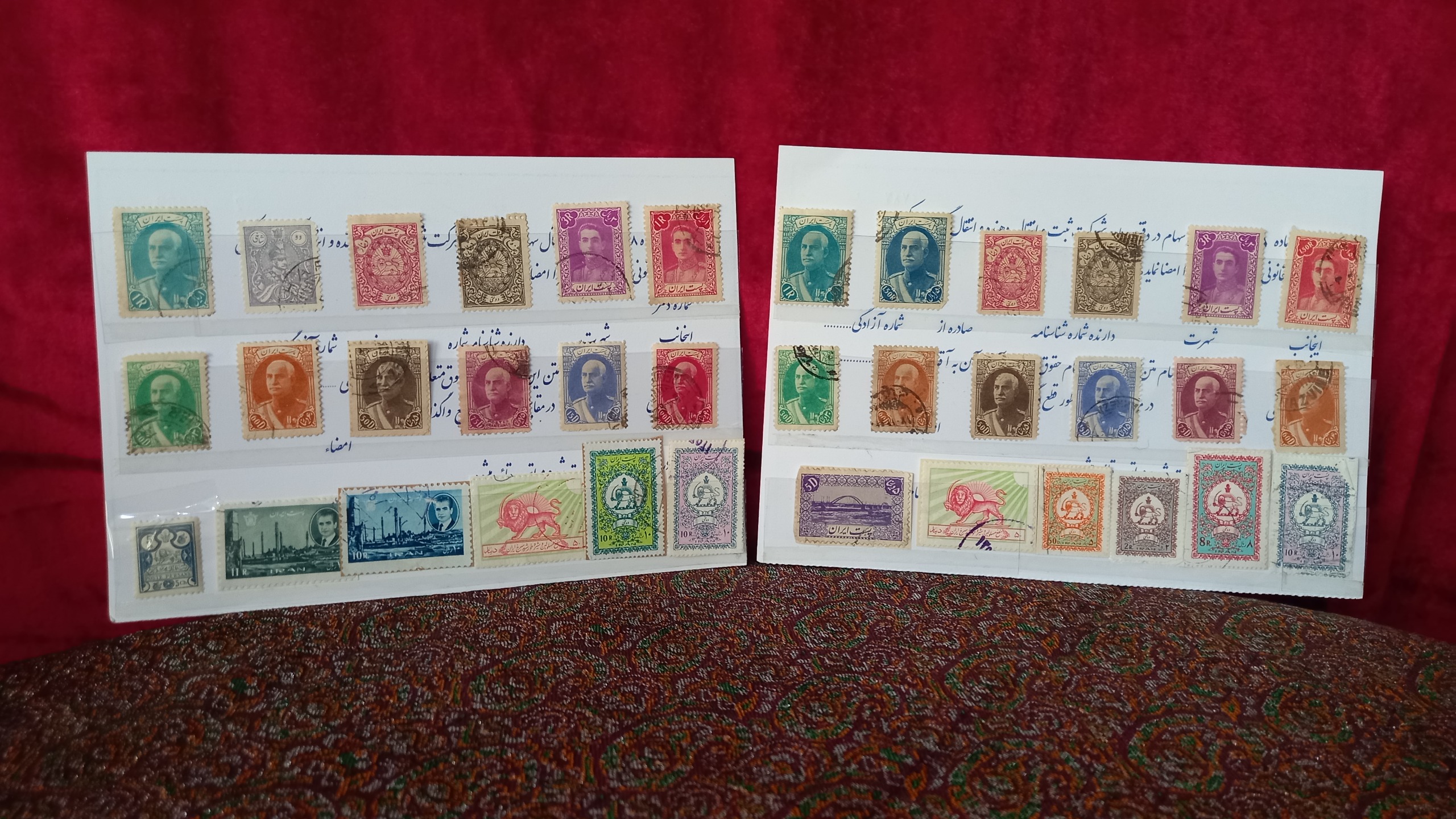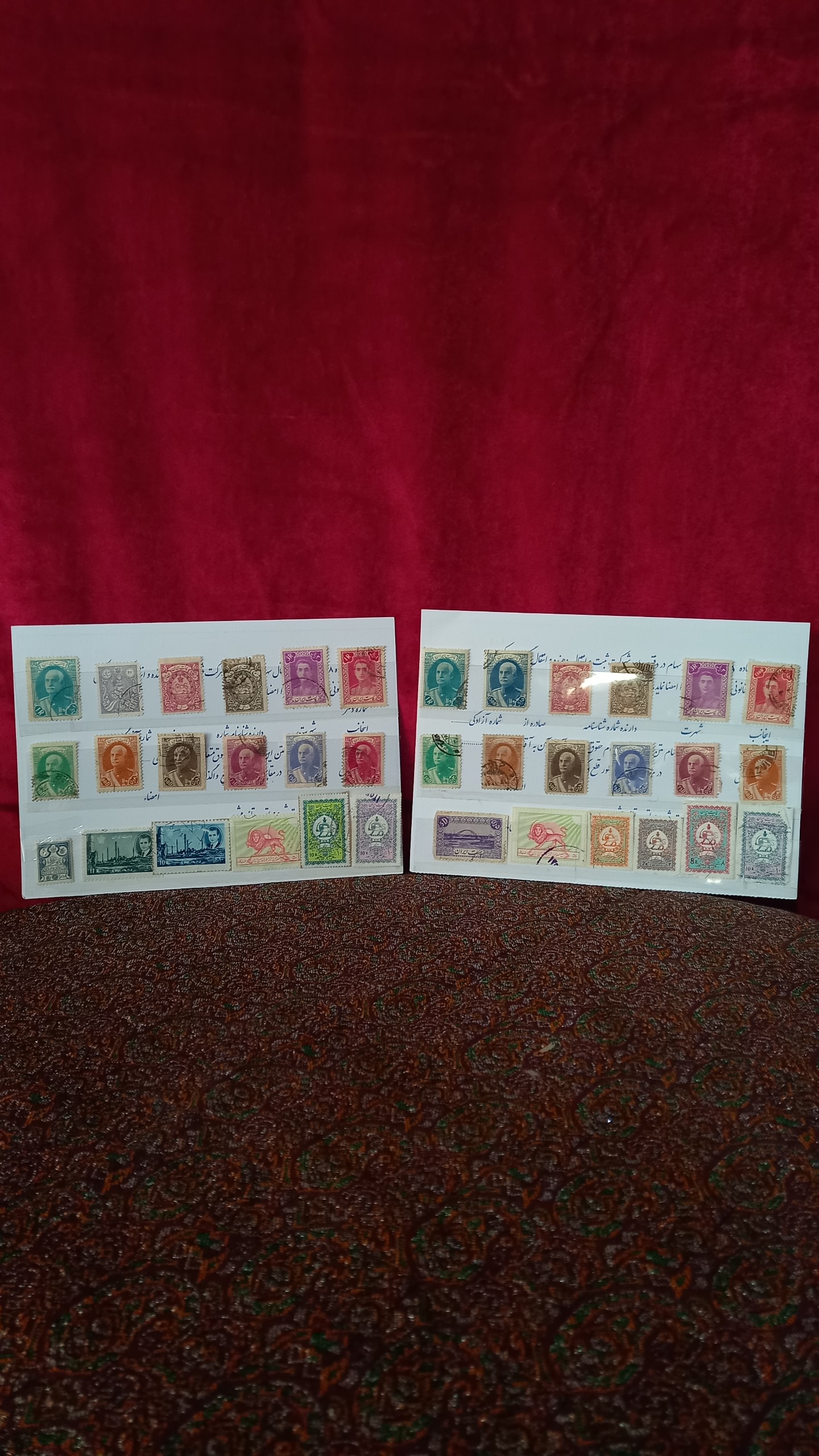 طبق تصویر دو سری تمبر قدیمی پهلوی