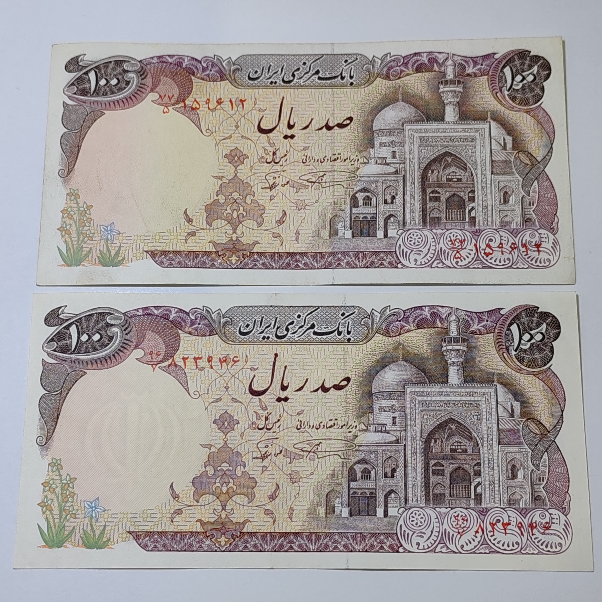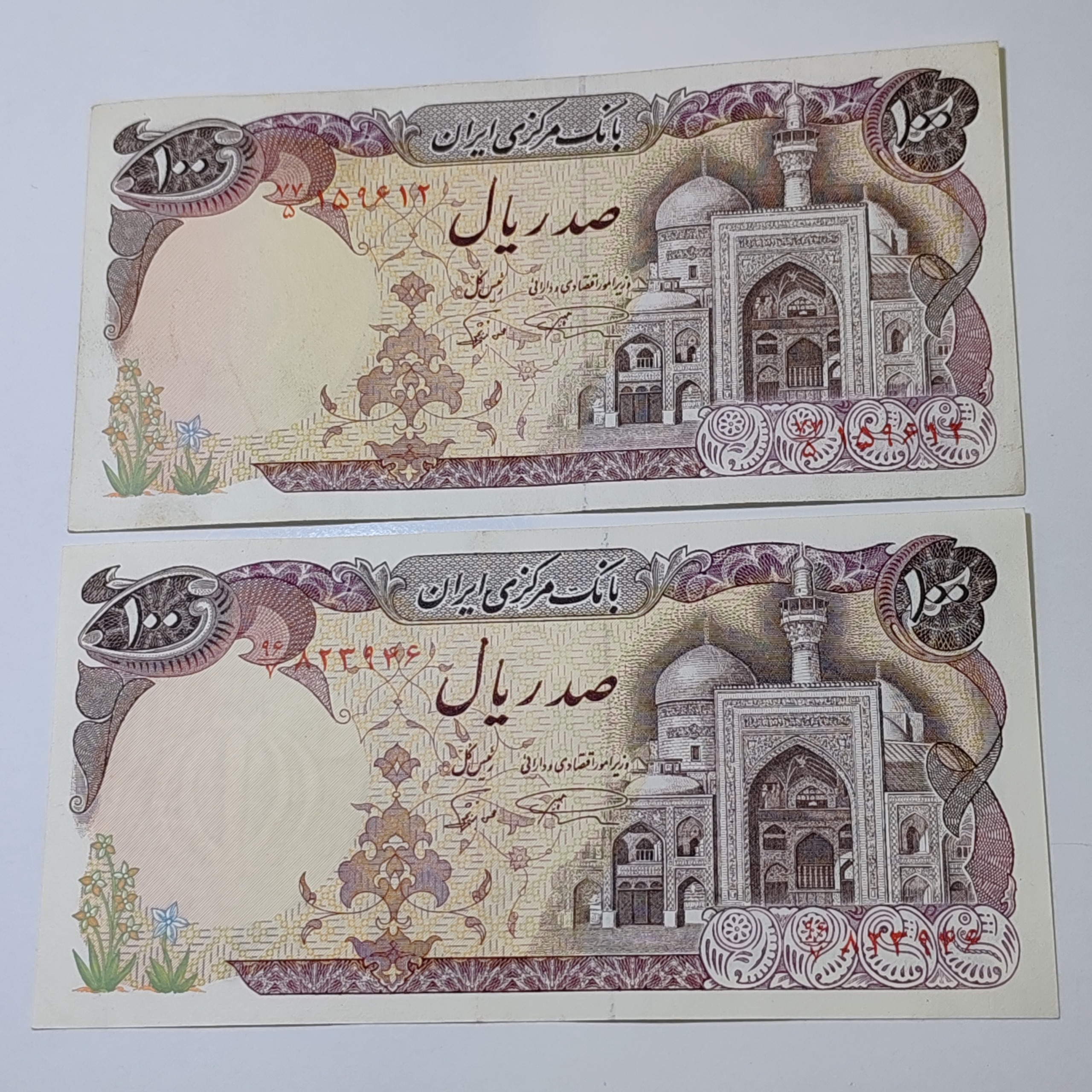 2برگ اسکناس 100ریالی بارگاهی بانکی نمازی نوربخش