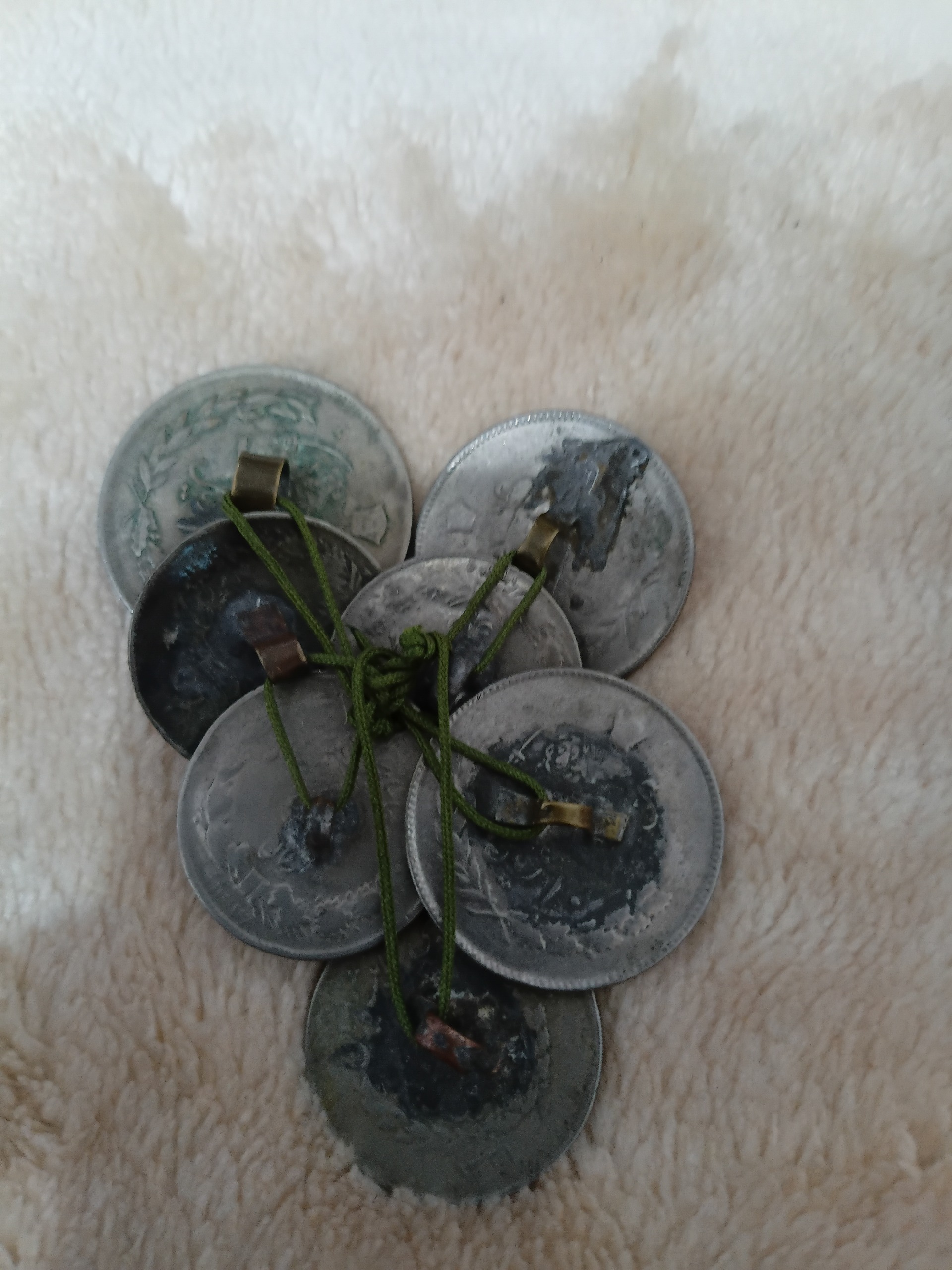 دکمه دست سازی قدیمی ازسکه قدیمی 7عدد کوچک وبزرگ برای لباس های قدیمی استفاده می شد(5ریالی 10 ریالی و 20 ریالی )
