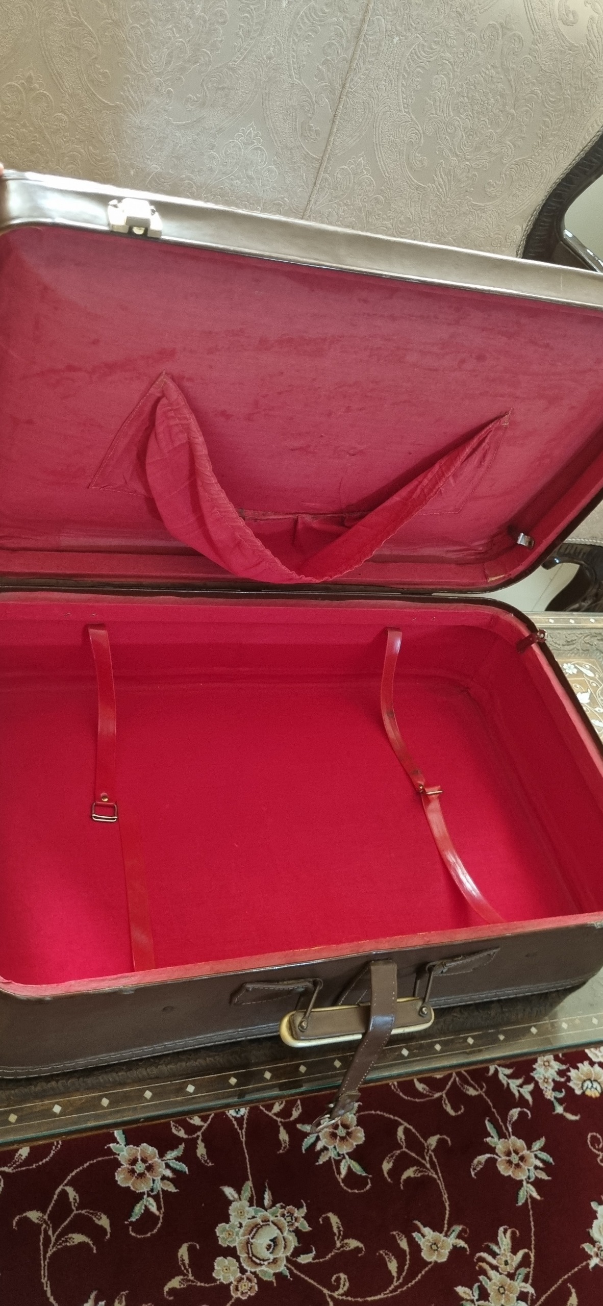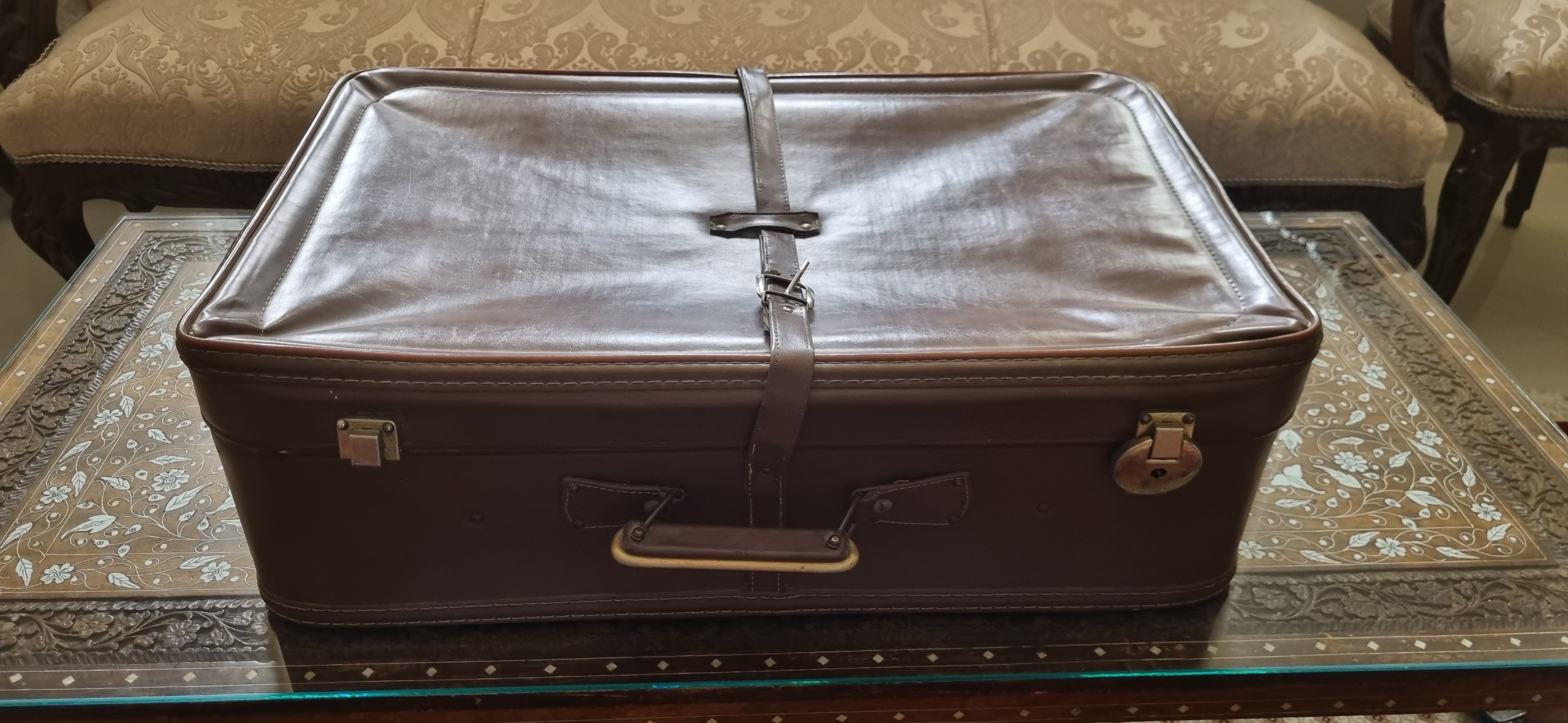 چمدان قدیمی قهوه ای داخل عکس