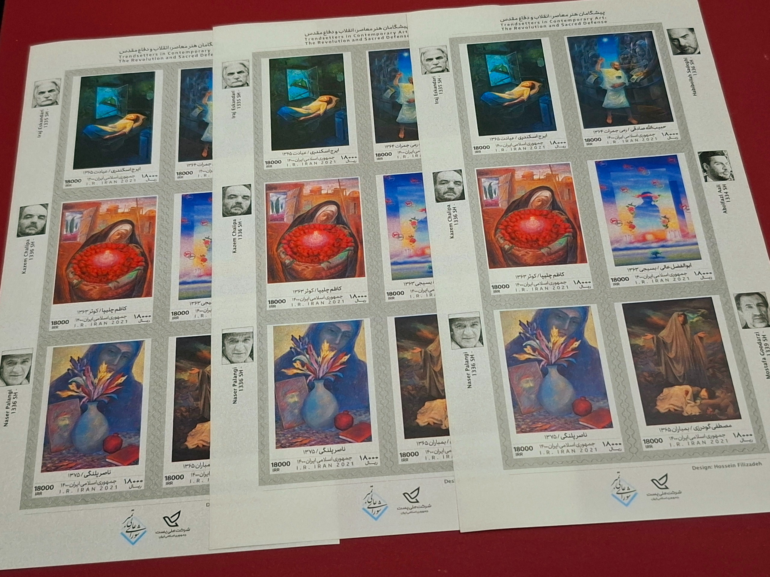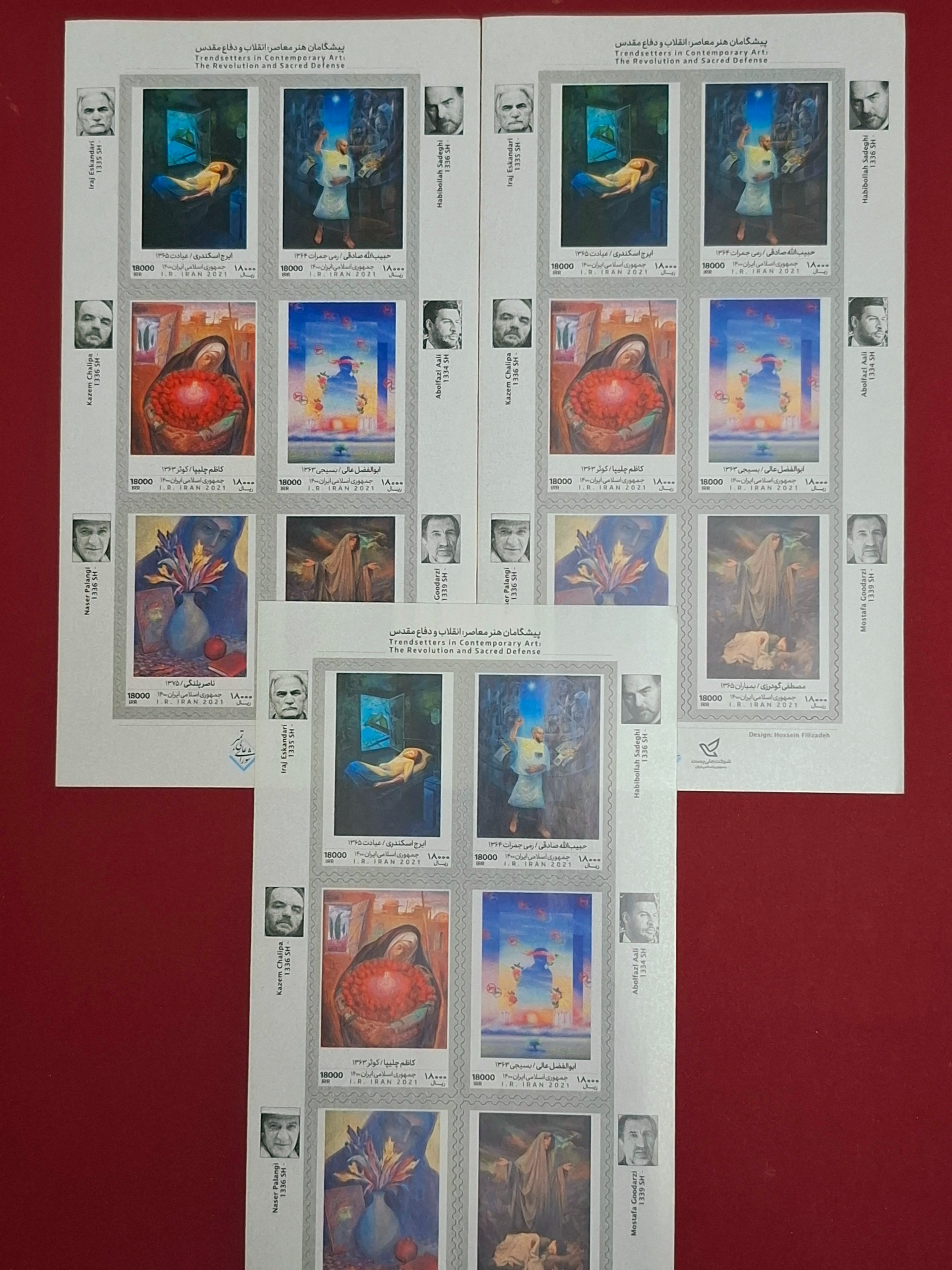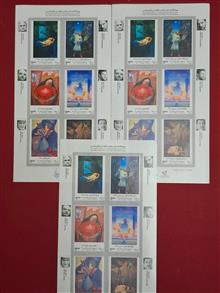 سه شیت تمبر هنرمندان معاصر ایران بسیارارزشمند وزیبا کاملا سوپر بانکی