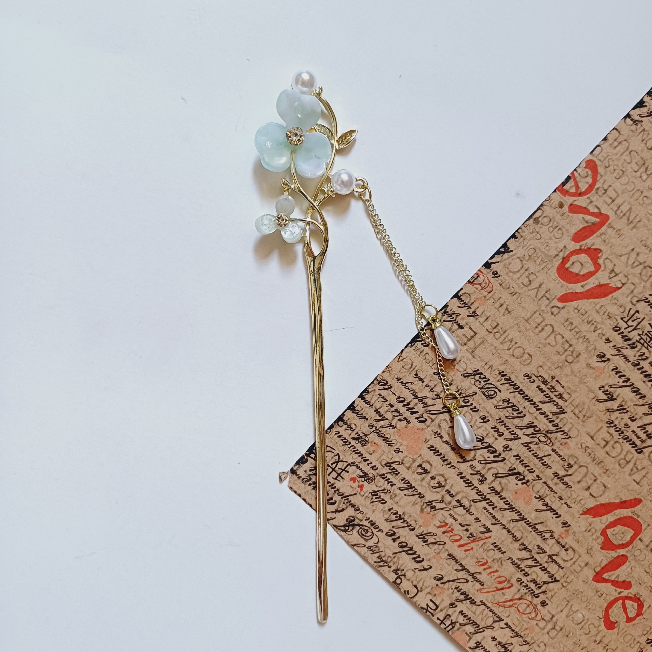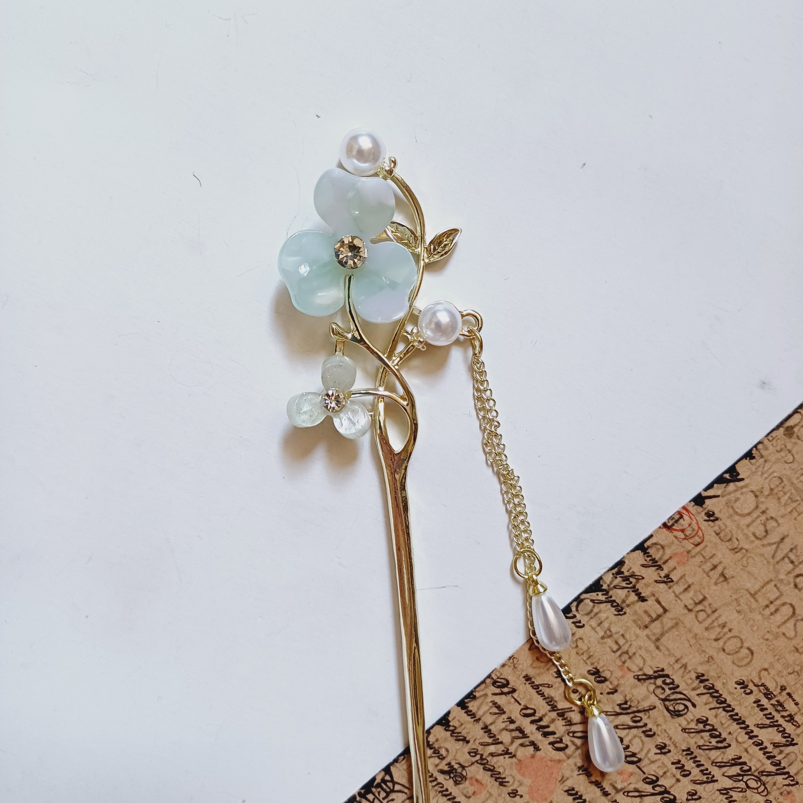 کانزاشی مو طرح گل سه پر سبز آبی وارداتی
