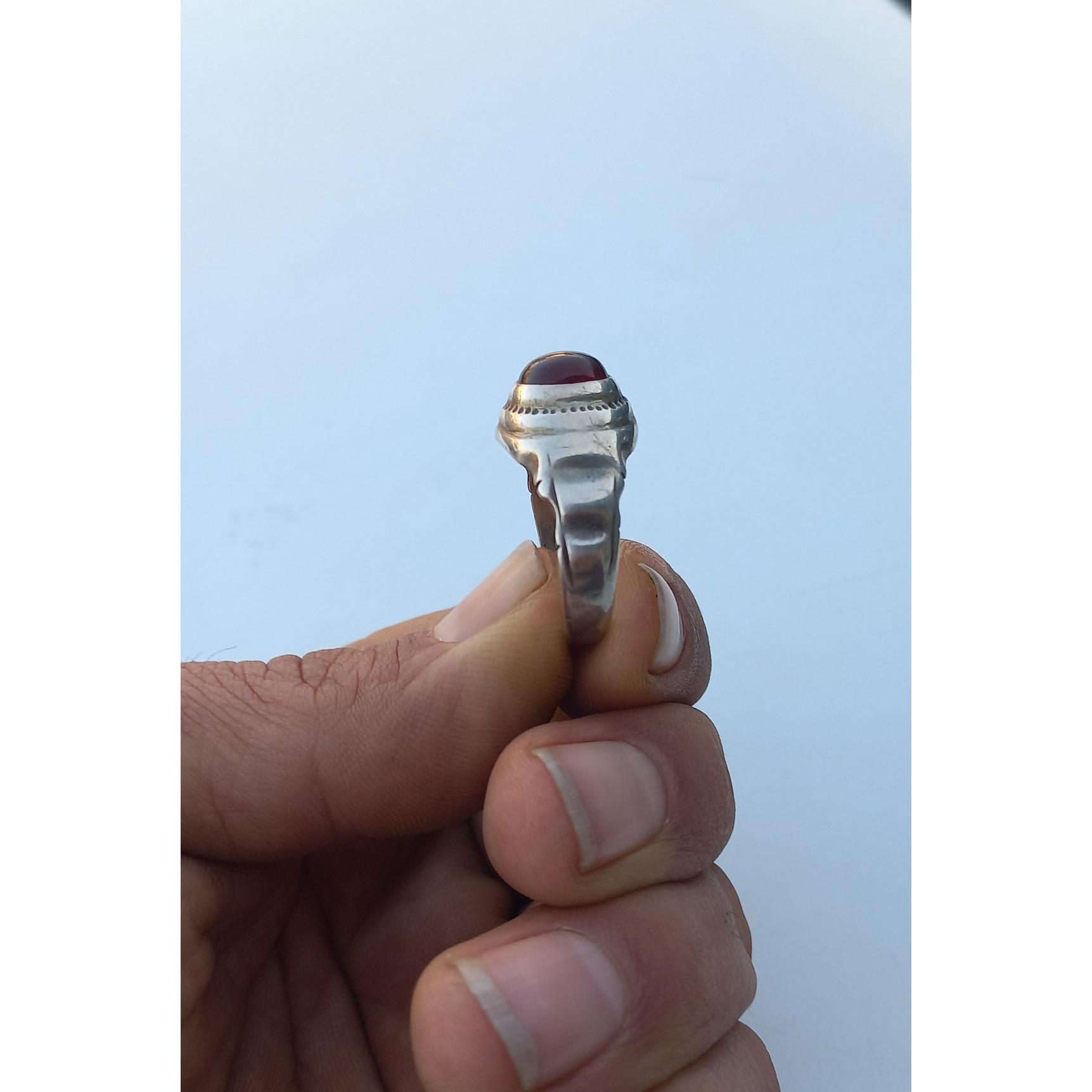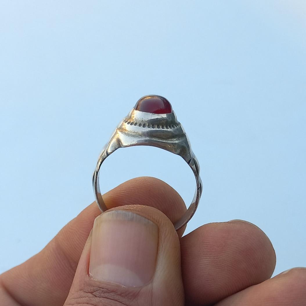 انگشتر عقیق کهنه سنگ فابریک به تضمین کهنه کاملا دستساز رکاب نقره 925 سایز 62