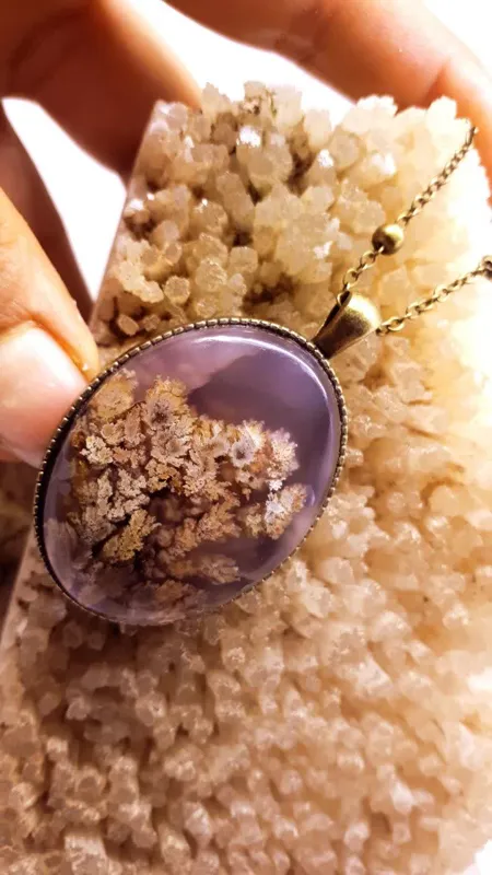 گردن آویز شجر (سنگ طبیعی خراسان جنوبی) کلکسیونی و جذاب با قاب و زنجیر برنجی
