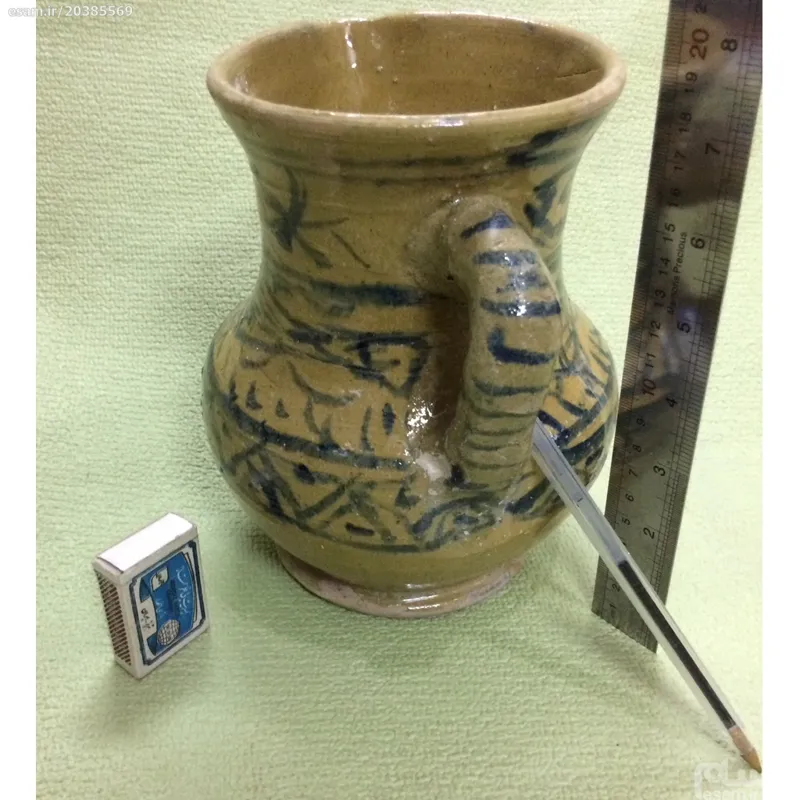توضیحات تکمیلی: پارچ دستساز قدیمی، سفالی، لعاب دار، نقاشی دستی، طرح ماهی