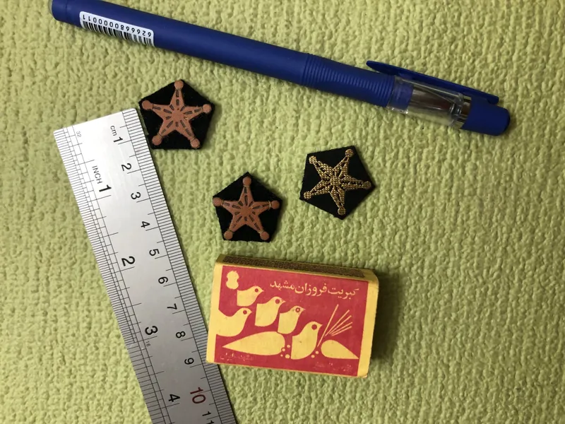 ابعاد: در عکس ها با خط کش، خودکار و کبریت مشخص شده است.
