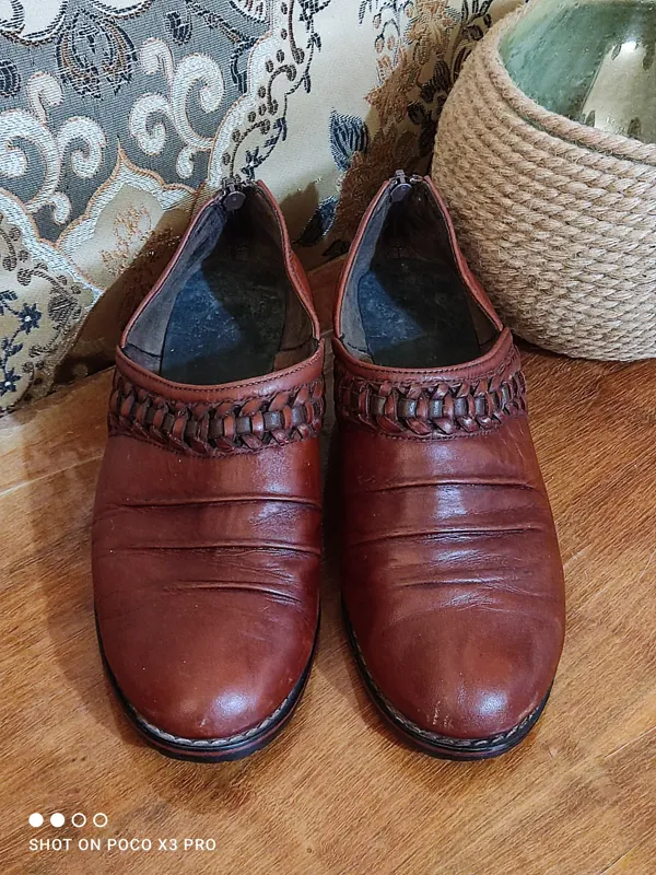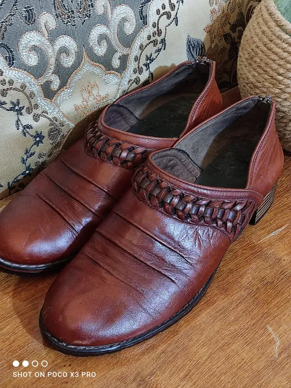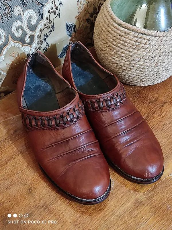 یک جفت کفشقدیمی تمام چرم کمیاب و کلکسیونی سایز 39 دقیق مطمان نیستم مردونه هست یا زنونه فکنم برای جفتش مناسب باشه کاملا دست دوز و کهنه یکار خاص و کلکسیونی بهترین و ضخیمترین چرم ساخته شده