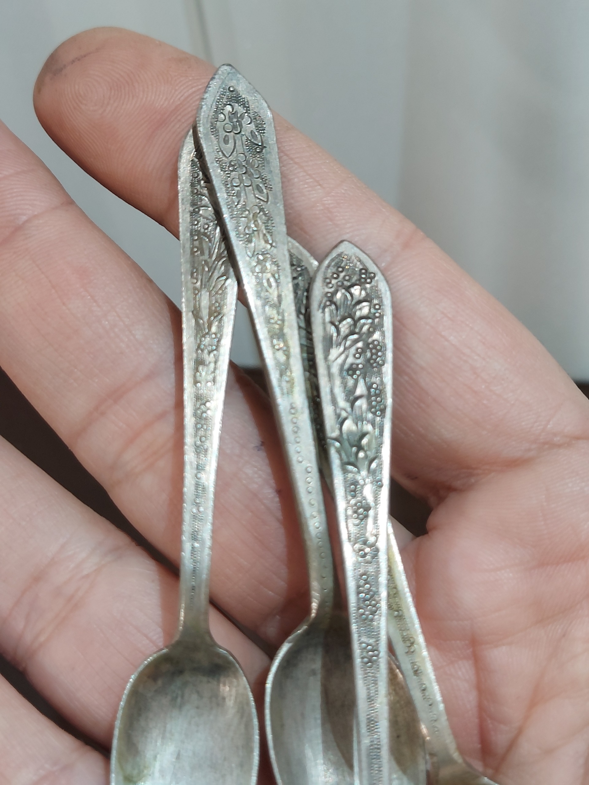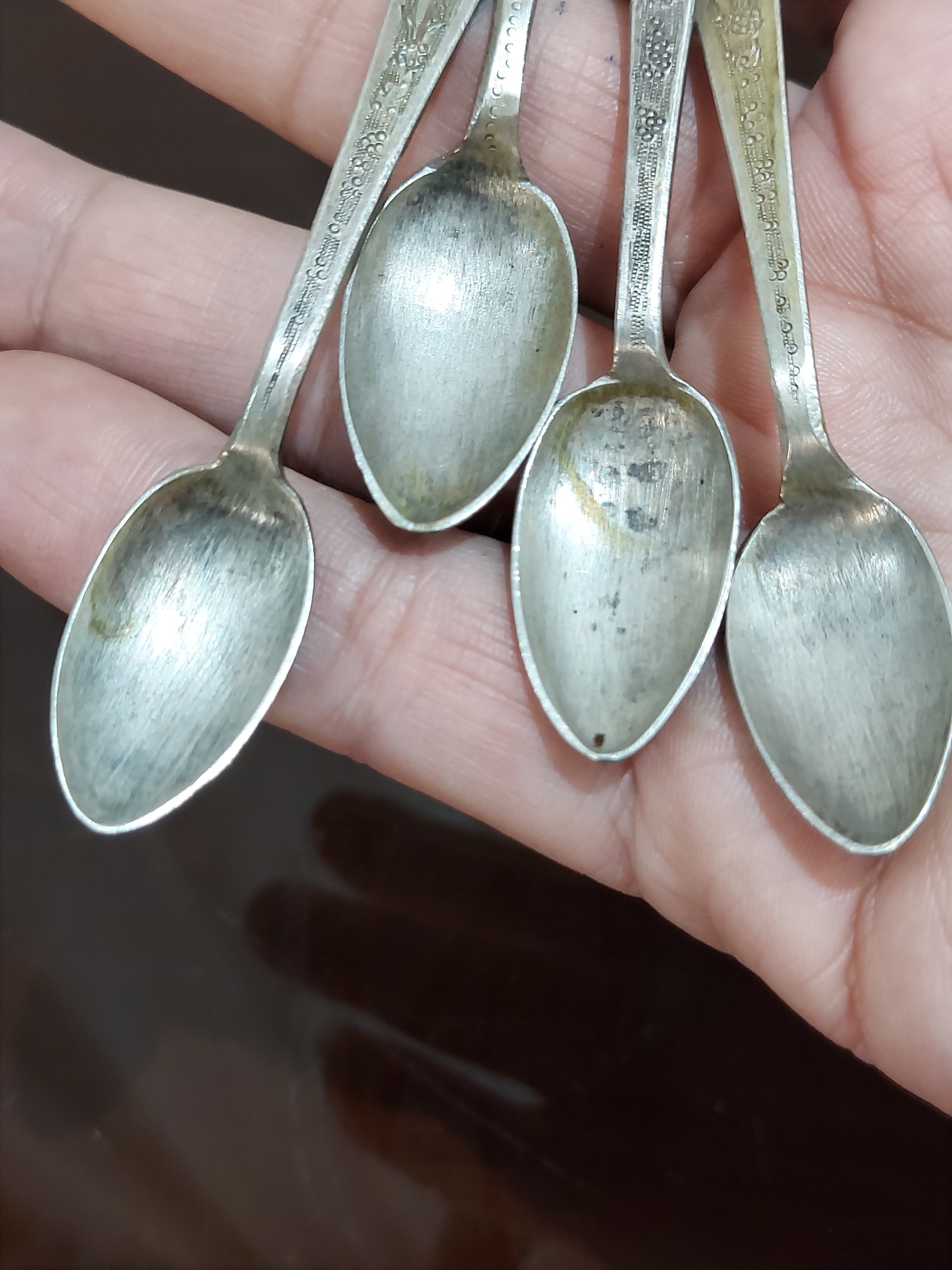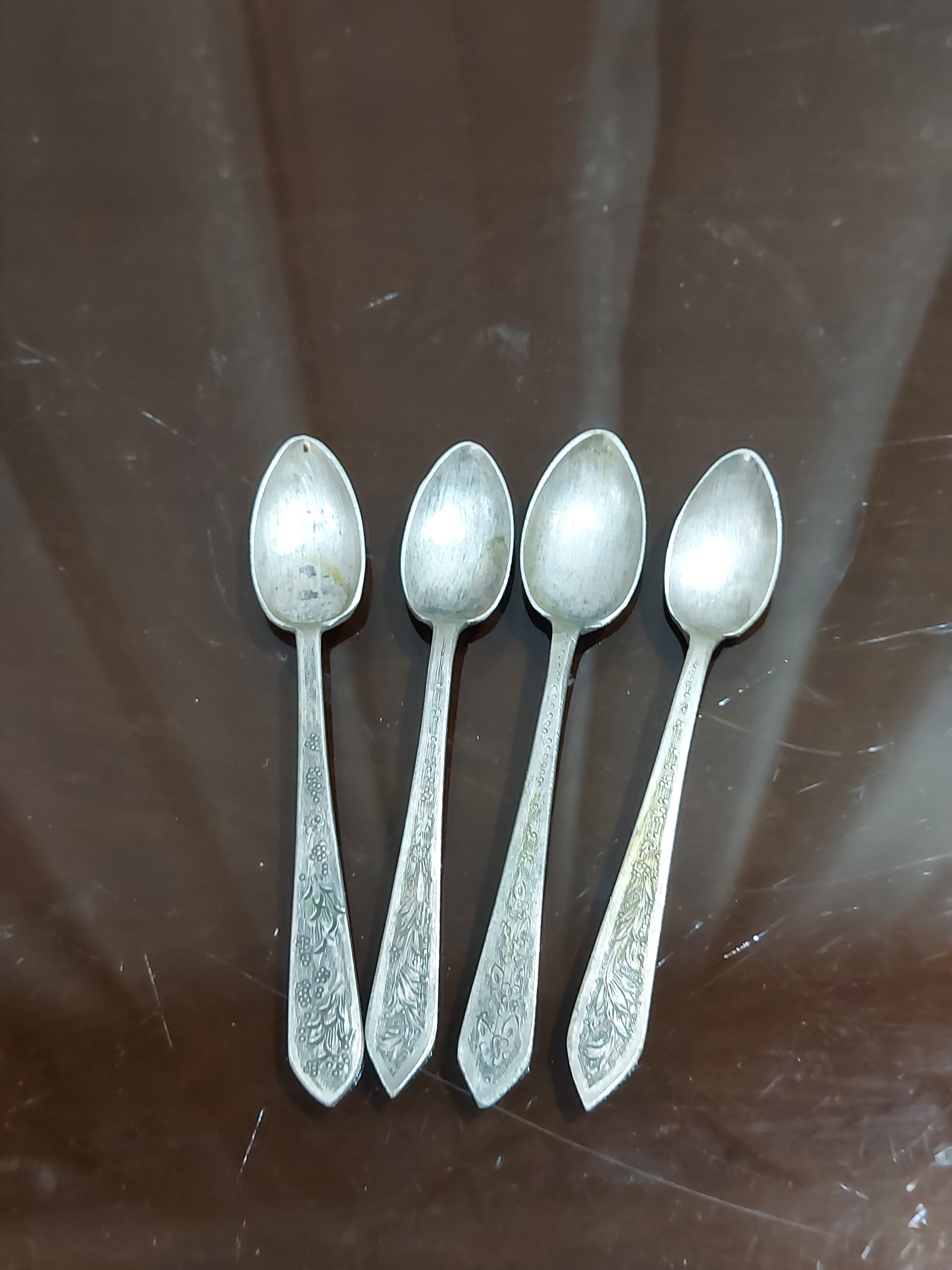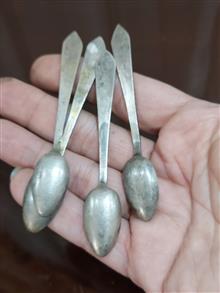 4 عدد قاشق چایخوری نقره جمعا 37 گرم قلمزنی قدمتدار