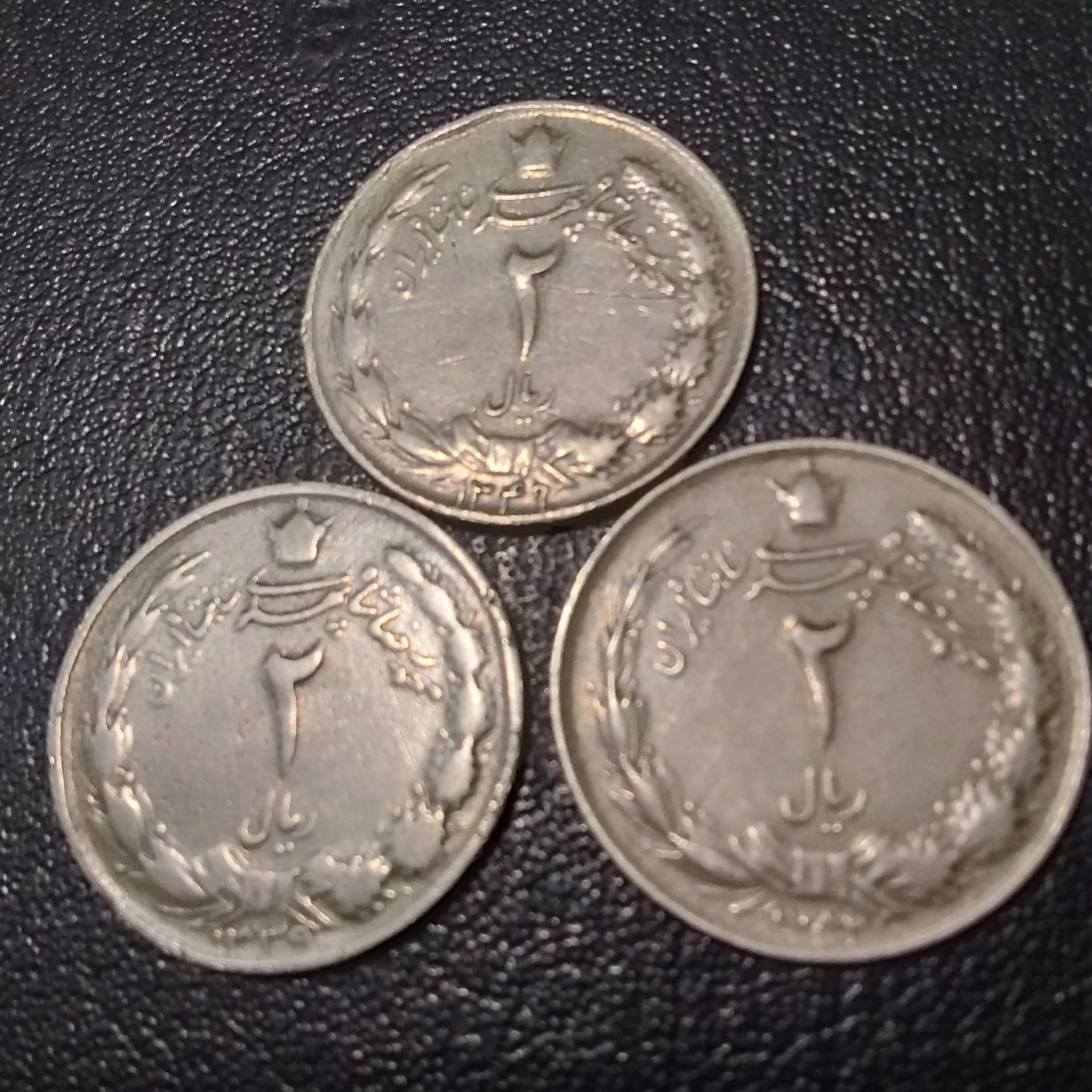 3 عدد سکه 2 ریالی مربوطه به سالهای 1339 و 1349 و 1354 خورشیدی میباشند